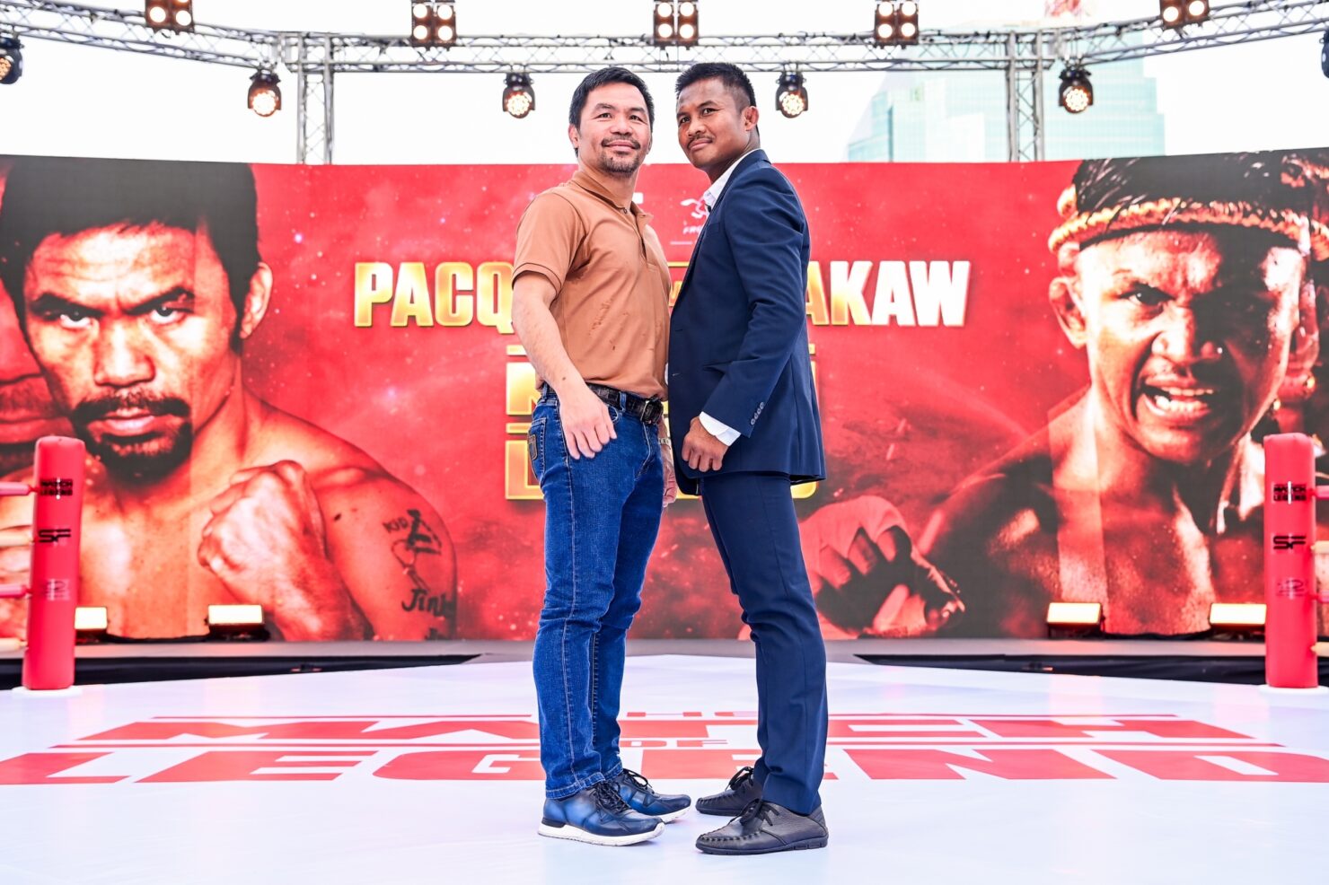 นายวินิจ เลิศรัตนชัย ประธานเจ้าหน้าที่ฝ่ายบริหาร บริษัท เฟรชแอร์ เฟสติวัล จำกัด ร่วมกับ นายสุวิทย์ ทองร่มโพธิ์ ประธานเจ้าหน้าที่บริหารสายการตลาด บริษัท เอส เอฟ คอร์ปอเรชั่น จำกัด (มหาชน) แถลงข่าวการจัดมวยแมตซ์หยุดโลก “THE MATCH OF LEGEND: Manny Pacquiao vs Buakaw Banchamek” ณ ไอคอนสยามพาร์ค ไอคอนสยาม เมื่อวันที่ 21 กรกฏาคม 2566