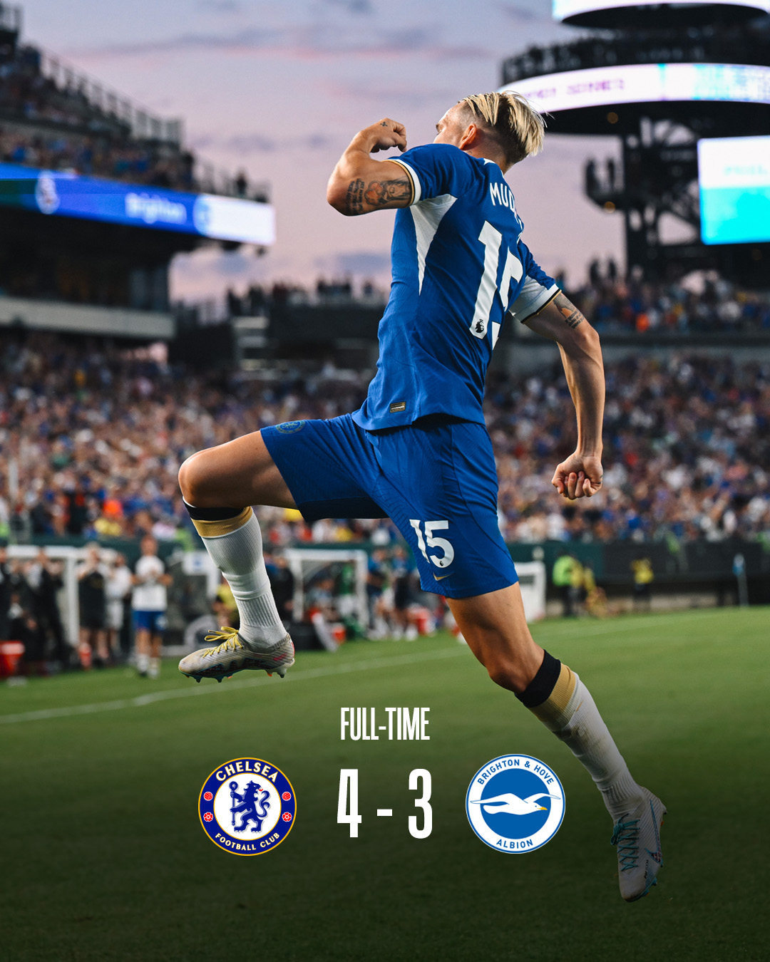 ผลการแข่งขันปรากฏว่า เชลซี ภายใต้การคุมทีมของโค้ชใหม่ เมาริซิโอ โปเช็ตติโน่ ยังฟอร์มแรงต่อเนื่อง เกมนี้ บดบชนะ ไบรท์ตัน ที่เหลือ 10 คนในช่วงครึ่งชั่วโมงสุดท้าย ยิงสามประตูแซงนำ 4-1 โดยที่ ก่อนจบเกมคว้าชัย 4-3 ไปอย่างระทึก ซึ่ง นิโคลัส แจ็คสัน ดาวยิงป้ายแดงฟอร์มเด่นสุดl ส่วน มิไคโล มูดริค ก็ประเดิมยิงประตูให้ทีมได้แล้ว จบเกม “สิงห์บลูส์” คว้าชัยไปอีกเกมในนัดอุ่นเครื่องที่ สหรัฐฯ
