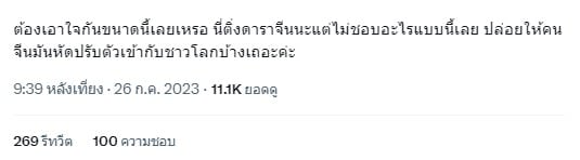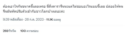 “ต้องประเคนอะไรขนาดนั้น ขนาดแคปชั่นยังเอาภาษาจีนไว้ก่อนไทย มันอยากดูซับจีนให้มันกลับไปดูที่ประเทศมันสิ”