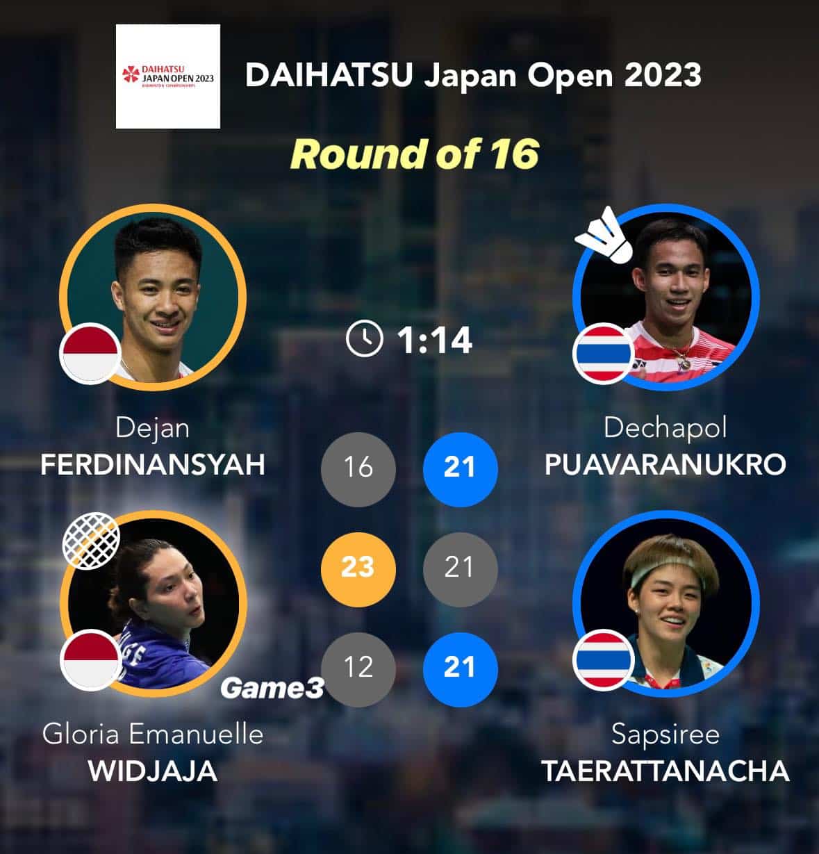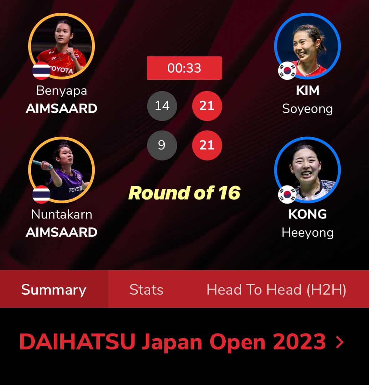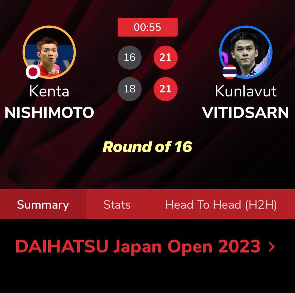 การแข่งขันแบดมินตัน ไดฮัทสุ เจแปน โอเพ่น 2023 ทัวร์นาเมนต์ระดับ เวิลด์ทัวร์ 750 ชิงเงินรางวัลรวม 850,000 เหรียญสหรัฐ หรือประมาณ 29,750,000 บาท ที่โยโยงิ เนชั่นแนล ยิมเนเซียม ในกรุงโตเกียว ประเทศญี่ปุ่น เมื่อวันพฤหัสบดีที่ 27 ก.ค. 66 เป็นการแข่งขันในรอบ 16 คนสุดท้าย