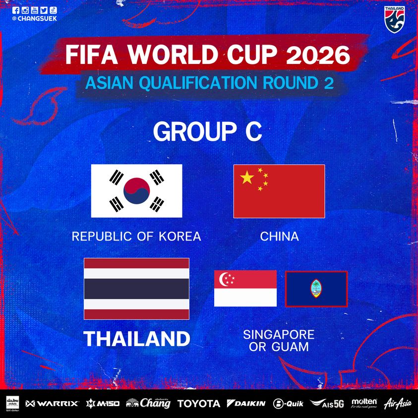 โปรแกรมของ ทีมชาติไทย ศึก ฟุตบอลโลก 2026 รอบคัดเลือก โซนเอเชีย รอบ 2