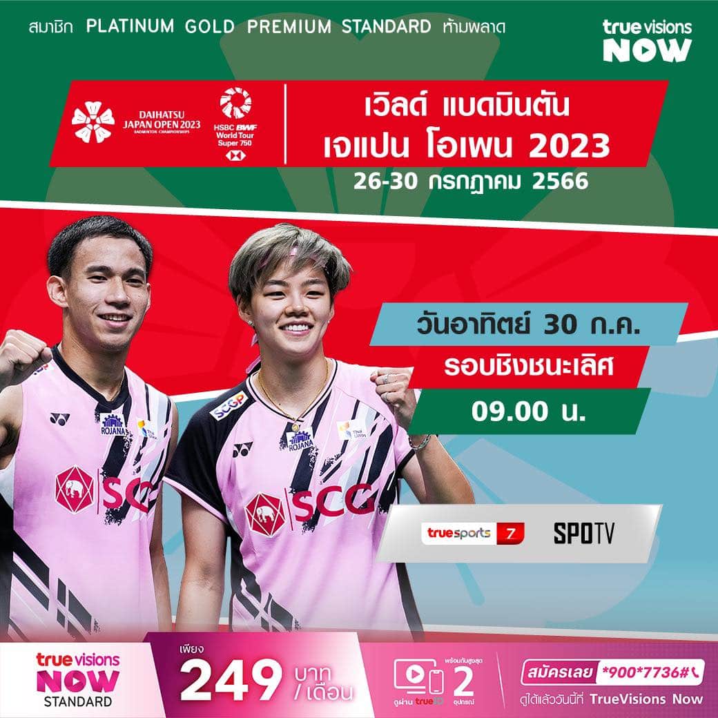ช่องทางรับชมสด รายการ แบดมินตัน เวิลด์ ทัวร์ ซูเปอร์ 750 “ไดฮัทสุ เจแปน โอเพ่น 2023” โดยช่อง True Sports 3 , True Sports 7 , SPO TV1 , SPO TV2 จะเริ่มถ่ายทอดสดรอบิงชนะเลิศตั้งแต่ช่วง 09.00 น. เป็นต้นไป