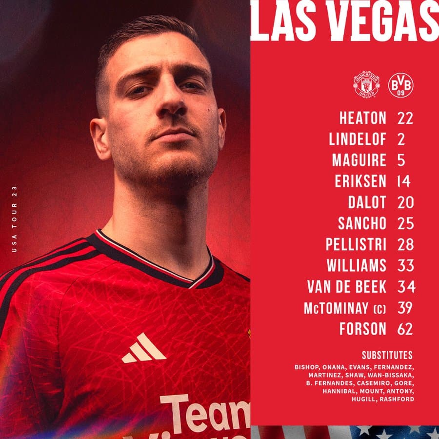 ผู้เล่นสำรอง : โอนานา, บิช็อป, มาร์ตีเนซ, เมาท์, แฟร์นันเดส, แรชฟอร์ด, กาเซมีโร่, อันโตนี่, ชอว์, อีแวนส์, วาน-บิสซาก้า, เฟร์นานเดซ, กอร์, ฮันนิบาล, ฮิวกิลล์