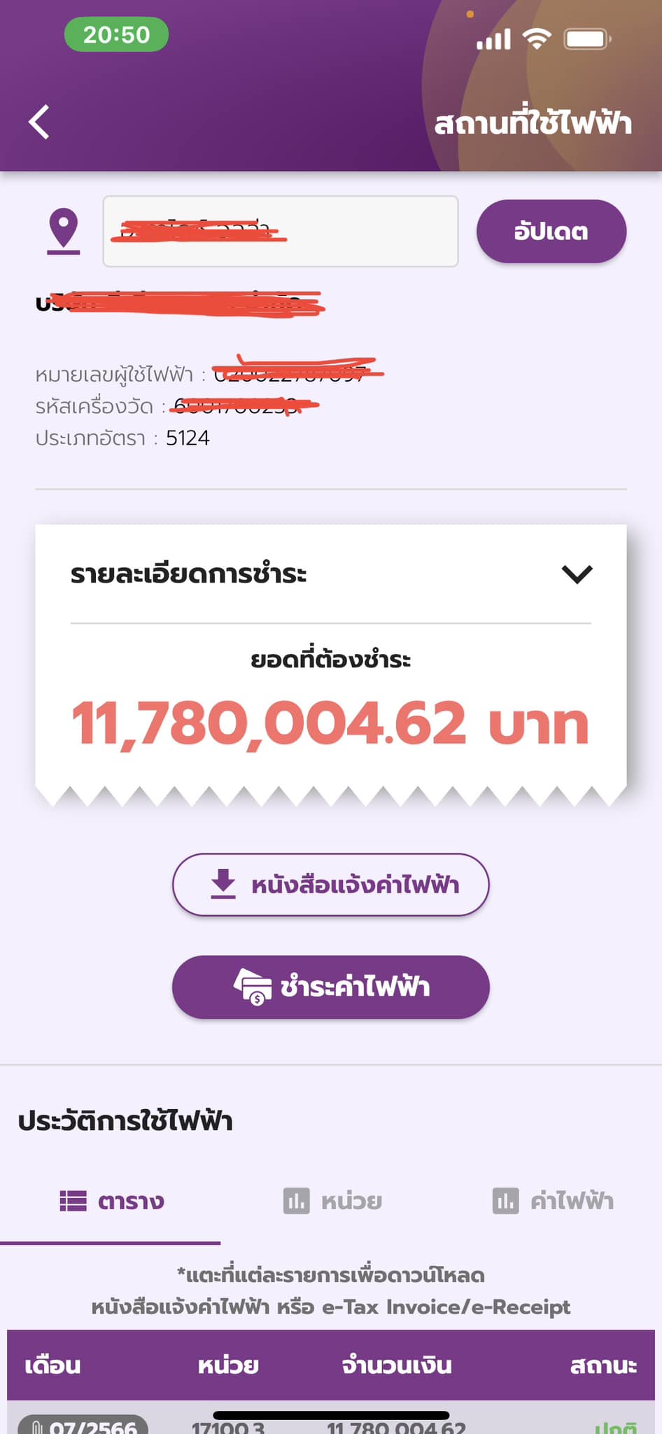โดยผู้ใช้เฟซบุ๊กคนดังกล่าวปกติค่าไฟอยู่ที่ประมาณ 4 หมื่นบาท ก่อนที่จะพุ่งทยานไปแตะ 11 ล้านบาทในเดือนนี้