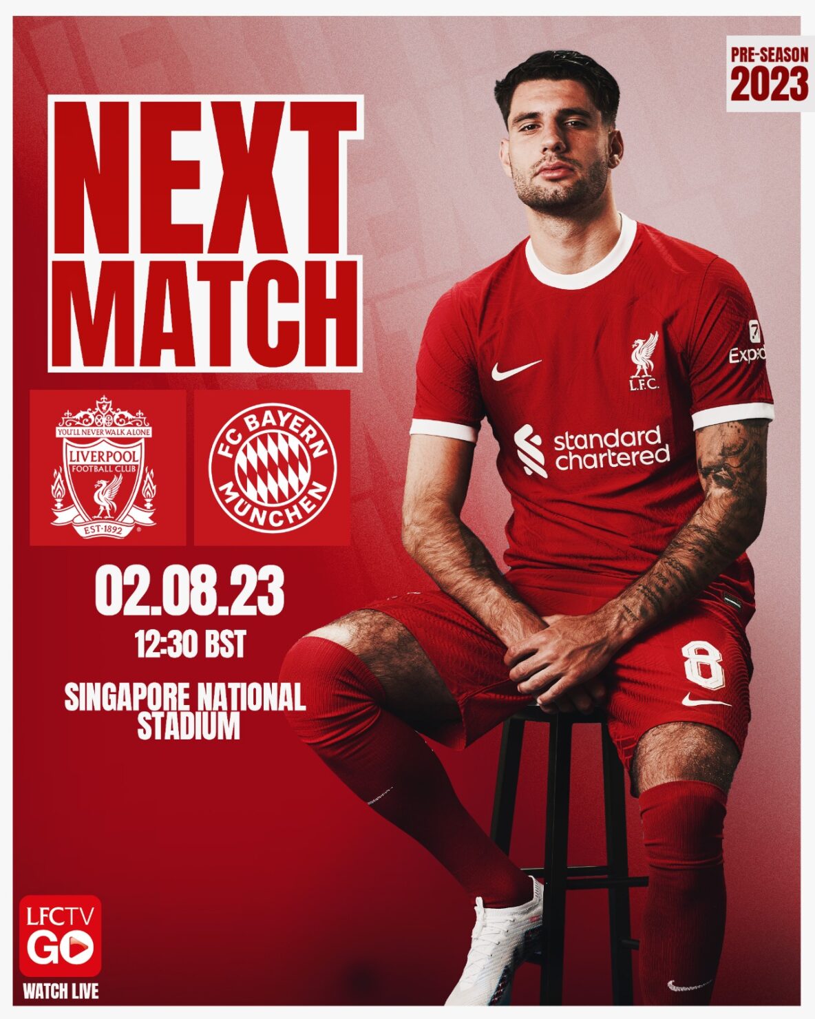 โดยเกมนี้จะลงเล่นกันที่ สนามกีฬาแห่งชาติสิงคโปร์ บาเยิร์น พบ ลิเวอร์พูล แฟนบอลสามารถดูบอลสดคู่ บาเยิร์น พบ ลิเวอร์พูล พร้อมคาดการณ์ 11ตัวจริง บาเยิร์นVSลิเวอร์พูล