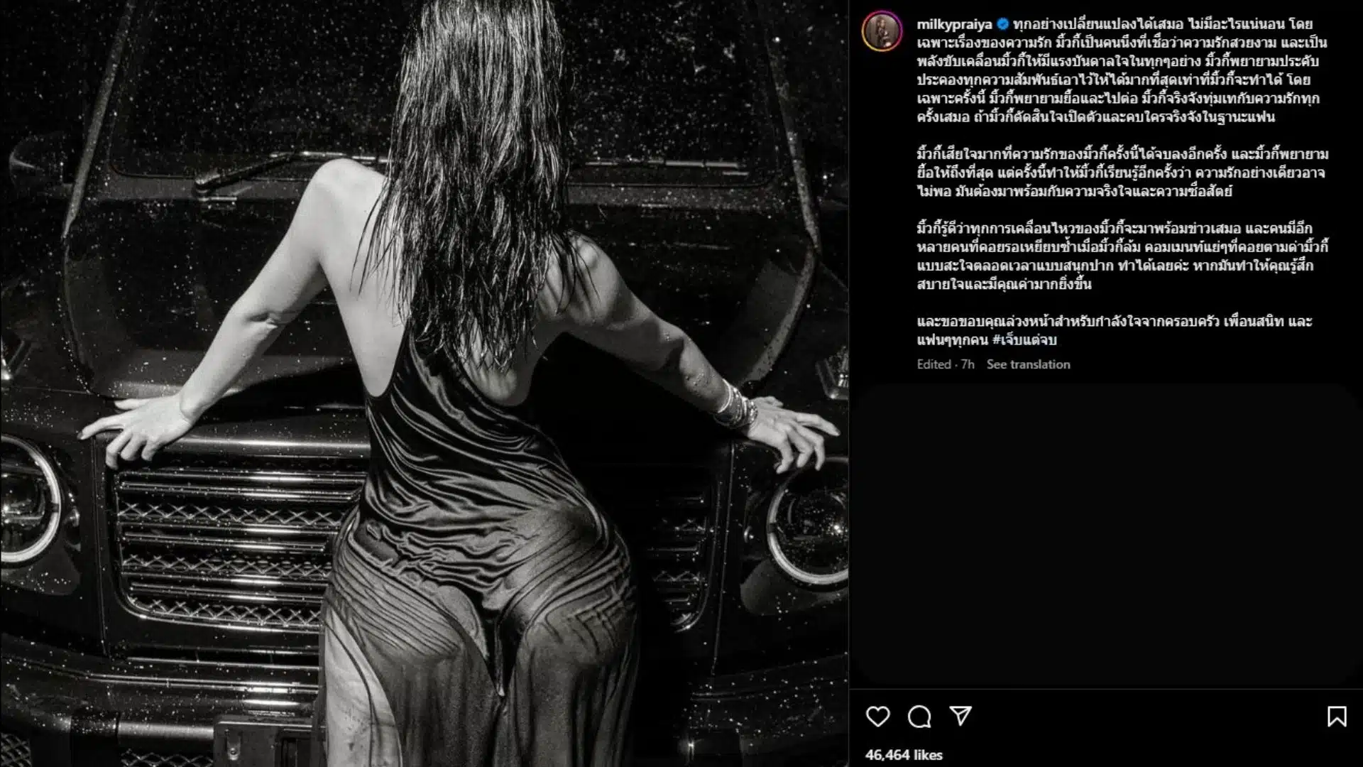 เมื่อวานนี้ (1 ส.ค. 66) มิ้วกี้ ไปรยา ได้ออกมาโพสต์ภาพขาวดำในไอจีส่วนตัว พร้อมแคปชั่นยาวเหยียดว่า