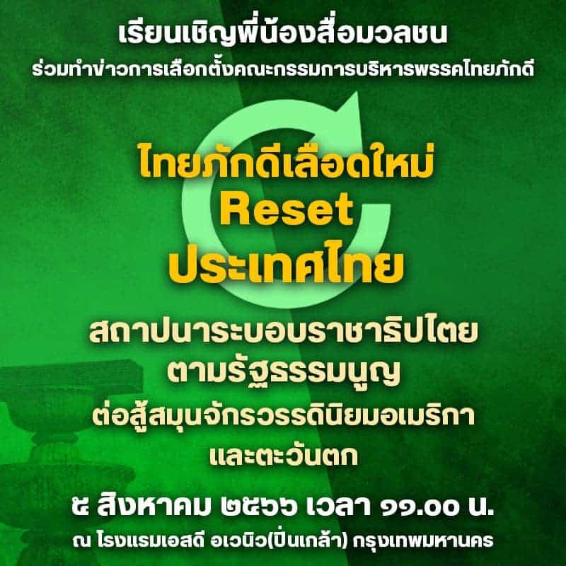 ไทยภักดีเลือดใหม่ Resetประเทศไทย สถาปณาระบอบราชาธิปไตย ตามรัฐธรรมนูญ ต่อสู้สมุนจักรวรรดินิยมอเมริกา และตะวันตก”