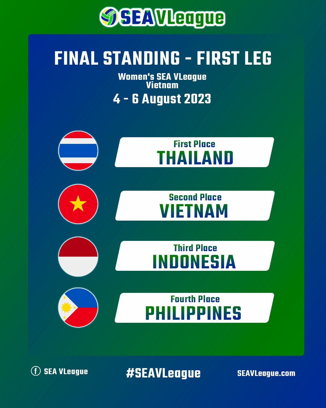 ส่งผลให้วอลเลย์บอลหญิงทีมชาติไทย คว้าแชมป์ในเลกแรกมาครอง พร้อมได้รับเงินรางวัล จัดเต็ม 17,000 เหรียญสหรัฐ หรือประมาณ 590,240 บาท