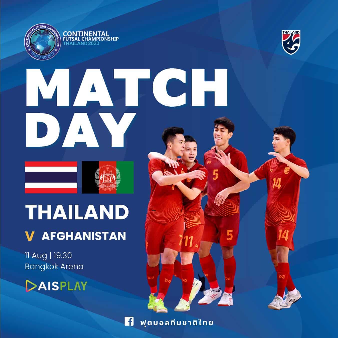 วันนี้ 11 สิงหาคม 2566 โต๊ะเล็กช้างศึก ฟุตซอลชายทีมชาติไทย เตรียมลงสนามพบกับ อัฟกานิสถาน ในการแข่งขันศึก CONTINENTAL FUTSAL CHAMPIONSHIP THAILAND 2023 รอบรองชนะเลิศ ถ่ายทอดสด ทางช่อง AIS PLAY