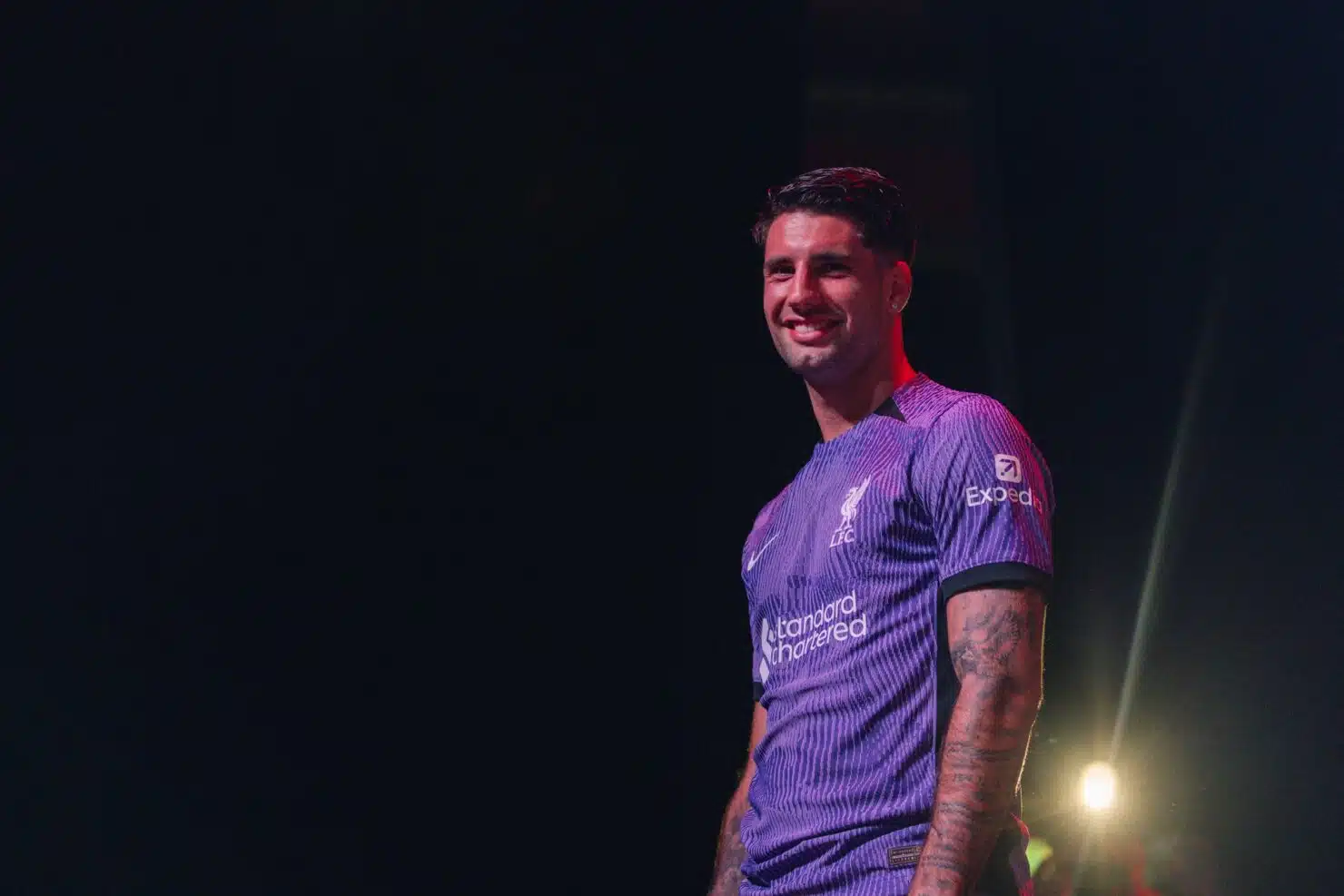 “หงส์แดง” ลิเวอร์พูล ได้ฤกษ์เปิดตัวชุดแข่งชุดที่ 3 ที่จะใช้ในดูกาล 2023/24 มาในสีม่วงสุดแปลกตา ระหว่างานคอนเสิร์ต Boss Night