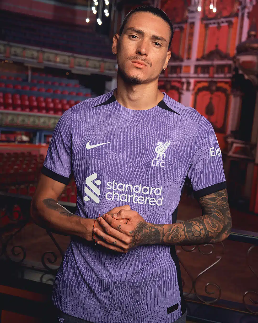 “หงส์แดง” ลิเวอร์พูล ได้ฤกษ์เปิดตัวชุดแข่งชุดที่ 3 ที่จะใช้ในดูกาล 2023/24 มาในสีม่วงสุดแปลกตา ระหว่างานคอนเสิร์ต Boss Night
