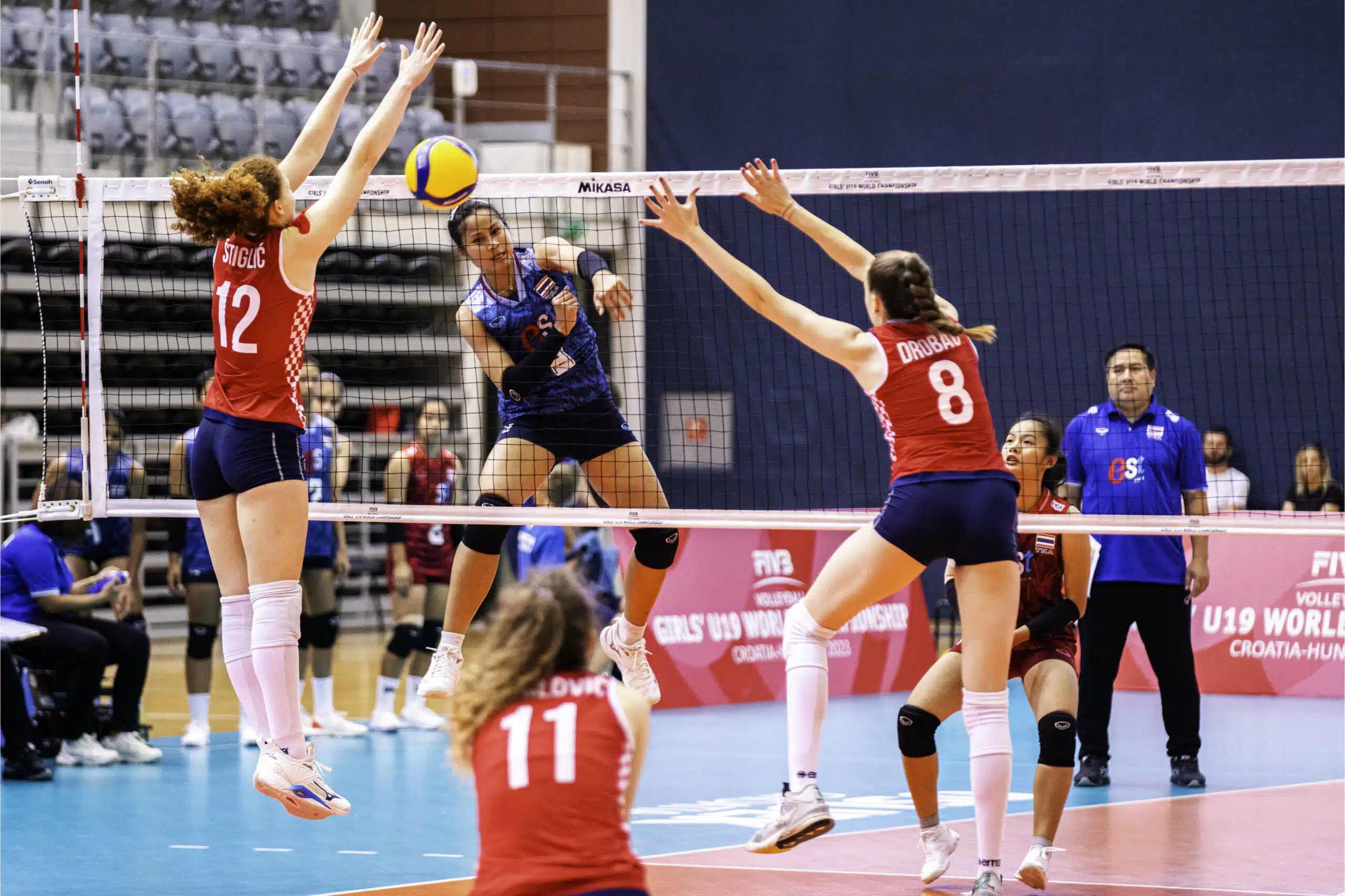 วันที่ 11 สิงหาคม 2566 ผลการแข่งขันวอลเลย์บอลยุวชนหญิง U19 ชิงแชมป์โลก 2023 ณ เมืองโอซิเย็ค ประเทศโครเอเชีย รอบชิงอันดับ 5 ทีมชาติไทย ลงสนามพบกับ โครเอเชีย นัดส่งท้ายทัวร์นาเมนต์