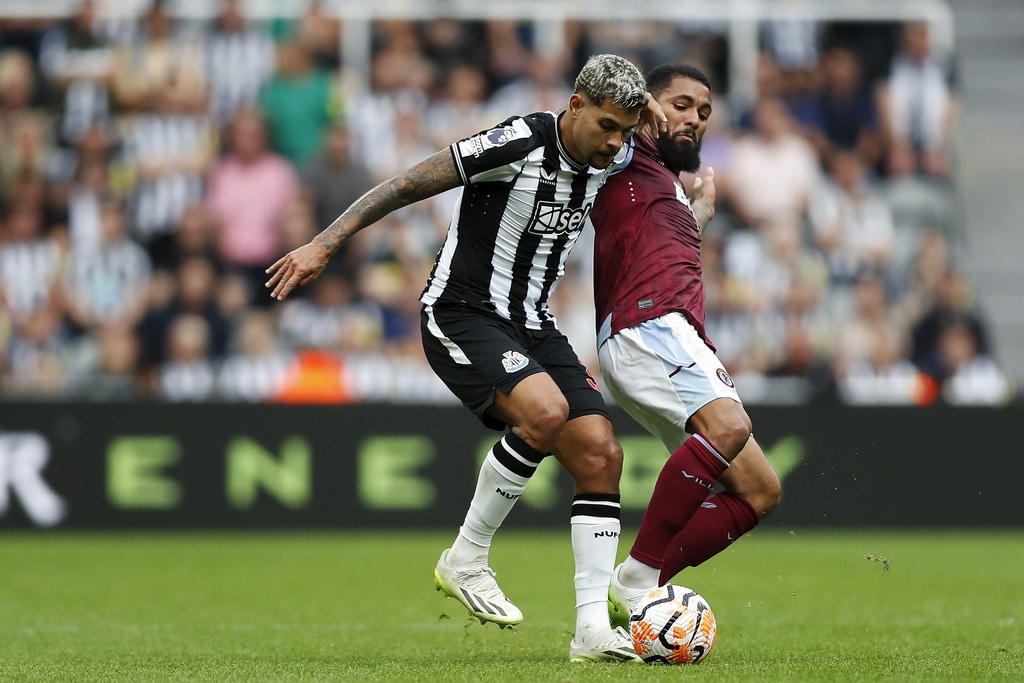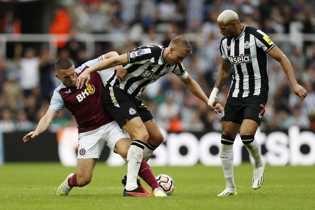 Newcastle’s Joelinton, left, wins the ball from Aston Villa’s Boubacar Kamara during the English Premier League soccer match between Newcastle and Aston Villa at St. James’ Park in Newcastle, England, Saturday, Aug. 12, 2023. (AP Photo/Steve Luciano)Aston Villa’s John McGinn, left, and Newcastle’s Dan Burn, center, battle for the ball while Newcastle’s Joelinton defends during the English Premier League soccer match between Newcastle and Aston Villa at St. James’ Park in Newcastle, England, Saturday, Aug. 12, 2023. (AP Photo/Steve Luciano)Newcastle’s Joelinton, right, looks to move the ball past Aston Villa’s Ezri Konsa during the English Premier League soccer match between Newcastle and Aston Villa at St. James’ Park in Newcastle, England, Saturday, Aug. 12, 2023. (AP Photo/Steve Luciano)Newcastle’s Kieran Trippier, left, and Aston Villa’s Lucas Digne battle for the ball during the English Premier League soccer match between Newcastle and Aston Villa at St. James’ Park in Newcastle, England, Saturday, Aug. 12, 2023. (AP Photo/Steve Luciano)Newcastle celebrate after scoring a goal during the English Premier League soccer match between Newcastle and Aston Villa at St. James’ Park in Newcastle, England, Saturday, Aug. 12, 2023. (AP Photo/Steve Luciano)Aston Villa’s Tyrone Mings, left, and Newcastle’s Alexander Isak battle for the ball during the English Premier League soccer match between Newcastle and Aston Villa at St. James’ Park in Newcastle, England, Saturday, Aug. 12, 2023. (AP Photo/Steve Luciano)Newcastle United’s Sandro Tonali, right, celebrates scoring their side’s first goal of the game with Bruno Guimaraes during the Premier League soccer match between Newcastle United and Aston Villa at St. James’ Park, Newcastle upon Tyne, England, Saturday Aug. 12, 2023. (Owen Humphreys/PA via AP)