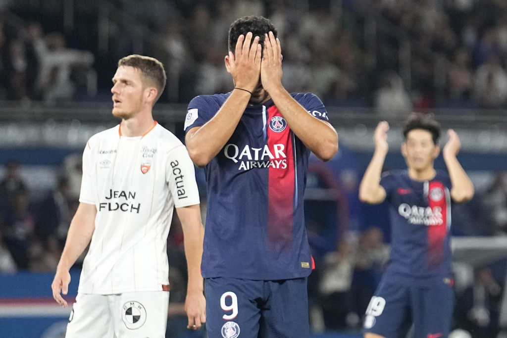 Lorient’s Ibrahima Kone, left is fouled by PSG’s Milan Skriniar during the French League One soccer match between Paris Saint-Germain and Lorient at the Parc des Princes stadium in Paris, Saturday, Aug. 12, 2023. (AP Photo/Michel Euler)PSG’s Goncalo Ramos reacts during the French League One soccer match between Paris Saint-Germain and Lorient at the Parc des Princes stadium in Paris, Saturday, Aug. 12, 2023. (AP Photo/Michel Euler)Lorient’s goalkeeper Yvon-Lamdry Mvogo, watches as PSG’s Fabian Ruiz, centre and Lorient’s Julien Laporte challenge during the French League One soccer match between Paris Saint-Germain and Lorient at the Parc des Princes stadium in Paris, Saturday, Aug. 12, 2023. (AP Photo/Michel Euler)PSG’s Warren Zaire-Emery, centre is surrounded by Lorient players during the French League One soccer match between Paris Saint-Germain and Lorient at the Parc des Princes stadium in Paris, Saturday, Aug. 12, 2023. (AP Photo/Michel Euler)PSG’s Vitor Machado, right, is challenged by Lorient’s Bamo Meite during the French League One soccer match between Paris Saint-Germain and Lorient at the Parc des Princes stadium in Paris, Saturday, Aug. 12, 2023. (AP Photo/Michel Euler)PSG’s Lee Kang-in, 2nd from right, kicks the ball during the French League One soccer match between Paris Saint-Germain and Lorient at the Parc des Princes stadium in Paris, Saturday, Aug. 12, 2023. (AP Photo/Michel Euler)PSG’s Goncalo Ramos, right, heads the ball challenged by Lorient’s Bamo Meite, 2nd from right, during the French League One soccer match between Paris Saint-Germain and Lorient at the Parc des Princes stadium in Paris, Saturday, Aug. 12, 2023. (AP Photo/Michel Euler)PSG’s Lee Kang-in, right, is challenged by Lorient’s Vincent Le Goff during the French League One soccer match between Paris Saint-Germain and Lorient at the Parc des Princes stadium in Paris, Saturday, Aug. 12, 2023. (AP Photo/Michel Euler)PSG’s Warren Zaire-Emery, centre, and Lorient’s Vincent Le Goff, right, challenge for the ball during the French League One soccer match between Paris Saint-Germain and Lorient at the Parc des Princes stadium in Paris, Saturday, Aug. 12, 2023. (AP Photo/Michel Euler)PSG’s Lee Kang-in, rear left, PSG’s Achraf Hakimi, centre and Warren Zaire-Emery stand over the ball during the French League One soccer match between Paris Saint-Germain and Lorient at the Parc des Princes stadium in Paris, Saturday, Aug. 12, 2023. (AP Photo/Michel Euler)PSG’s Milan Skriniar looks on during the French League One soccer match between Paris Saint-Germain and Lorient at the Parc des Princes stadium in Paris, Saturday, Aug. 12, 2023. (AP Photo/Michel Euler)PSG players applaud the fans at the end of the French League One soccer match between Paris Saint-Germain and Lorient at the Parc des Princes stadium in Paris, Saturday, Aug. 12, 2023. (AP Photo/Michel Euler)