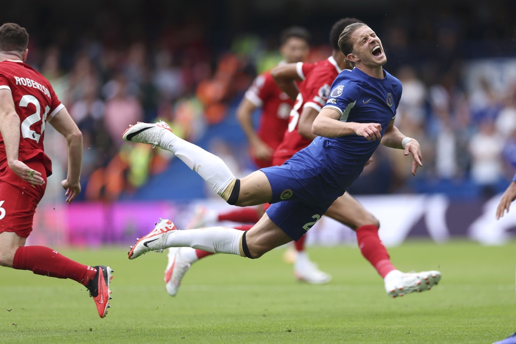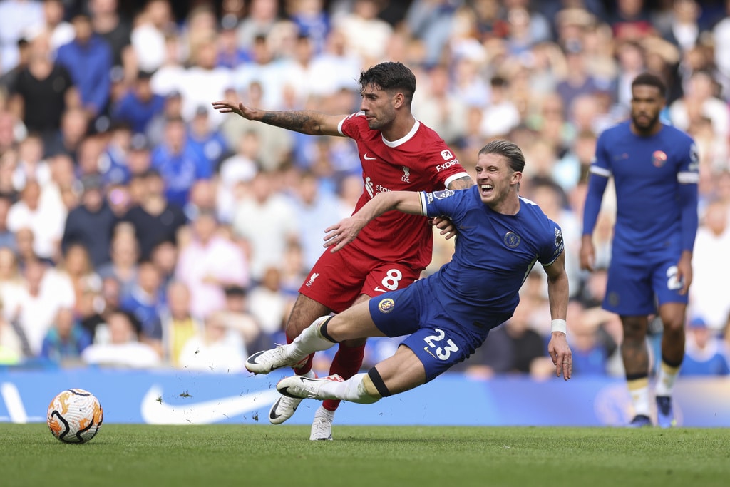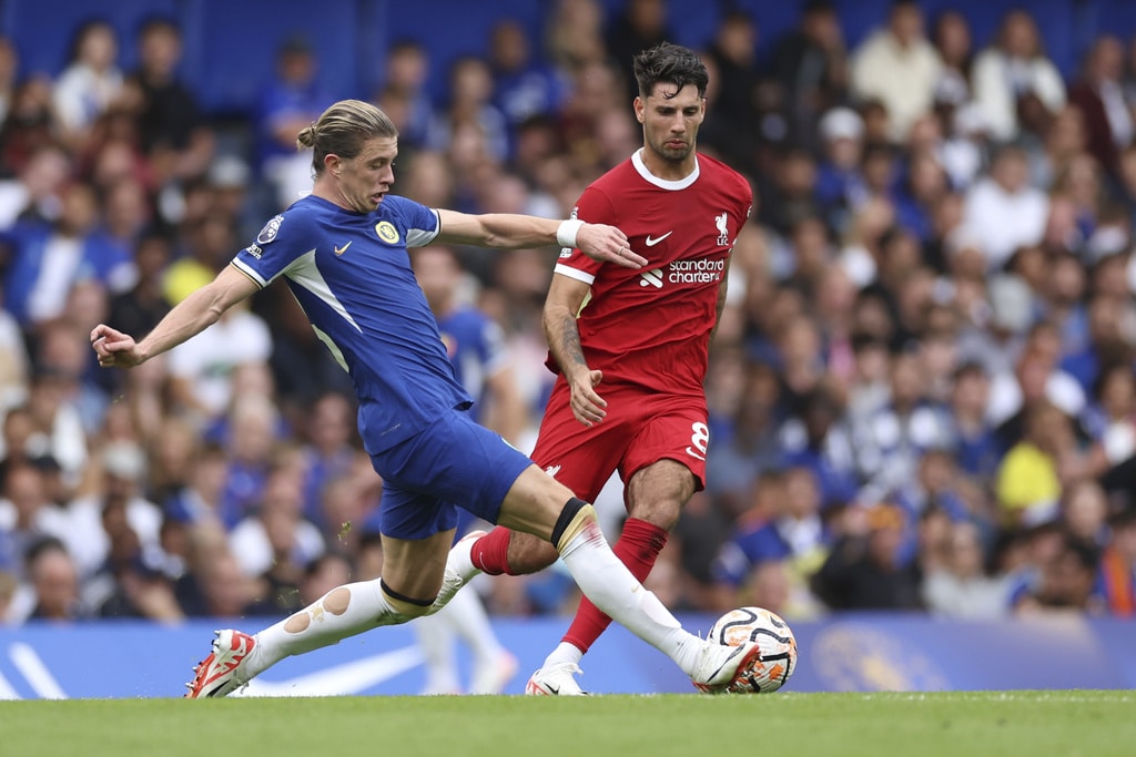 Chelsea manager Mauricio Pochettino, left, greets Liverpool’s Virgil van Dijk after the English Premier League soccer match between Chelsea and Liverpool at Stamford Bridge Stadium in London, Sunday, Aug. 13, 2023. (AP Photo/Ian Walton)Liverpool’s Dominik Szoboszlai, left, challenges for the ball with Chelsea’s Conor Gallagher during the English Premier League soccer match between Chelsea and Liverpool at Stamford Bridge Stadium in London, Sunday, Aug. 13, 2023. (AP Photo/Ian Walton)Liverpool’s Dominik Szoboszlai, left, challenges for the ball with Chelsea’s Conor Gallagher during the English Premier League soccer match between Chelsea and Liverpool at Stamford Bridge Stadium in London, Sunday, Aug. 13, 2023. (AP Photo/Ian Walton)Chelsea’s Nikolas Jackson, right, challenges for the ball with Liverpool’s Alexis Mac Allister during the English Premier League soccer match between Chelsea and Liverpool at Stamford Bridge Stadium in London, Sunday, Aug. 13, 2023. (AP Photo/Ian Walton)Liverpool’s Diogo Jota, left, and Chelsea’s Thiago Silva in action during the English Premier League soccer match between Chelsea and Liverpool at Stamford Bridge Stadium in London, Sunday, Aug. 13, 2023. (AP Photo/Ian Walton)Chelsea’s Conor Gallagher, left, challenges for the ball with Liverpool’s Dominik Szoboszlai during the English Premier League soccer match between Chelsea and Liverpool at Stamford Bridge Stadium in London, Sunday, Aug. 13, 2023. (AP Photo/Ian Walton)Chelsea manager Mauricio Pochettino reacts during the English Premier League soccer match between Chelsea and Liverpool at Stamford Bridge Stadium in London, Sunday, Aug. 13, 2023. (AP Photo/Ian Walton)Referee Anthony Taylor shows a yellow card to Liverpool’s Diogo Jota, second right, during the English Premier League soccer match between Chelsea and Liverpool at Stamford Bridge Stadium in London, Sunday, Aug. 13, 2023. (AP Photo/Ian Walton)Chelsea’s Conor Gallagher is tackled by Liverpool’s Andrew Robertson, left, during the English Premier League soccer match between Chelsea and Liverpool at Stamford Bridge Stadium in London, Sunday, Aug. 13, 2023. (AP Photo/Ian Walton)Chelsea’s Conor Gallagher, left, challenges for the ball with Liverpool’s Cody Gakpo during the English Premier League soccer match between Chelsea and Liverpool at Stamford Bridge Stadium in London, Sunday, Aug. 13, 2023. (AP Photo/Ian Walton)