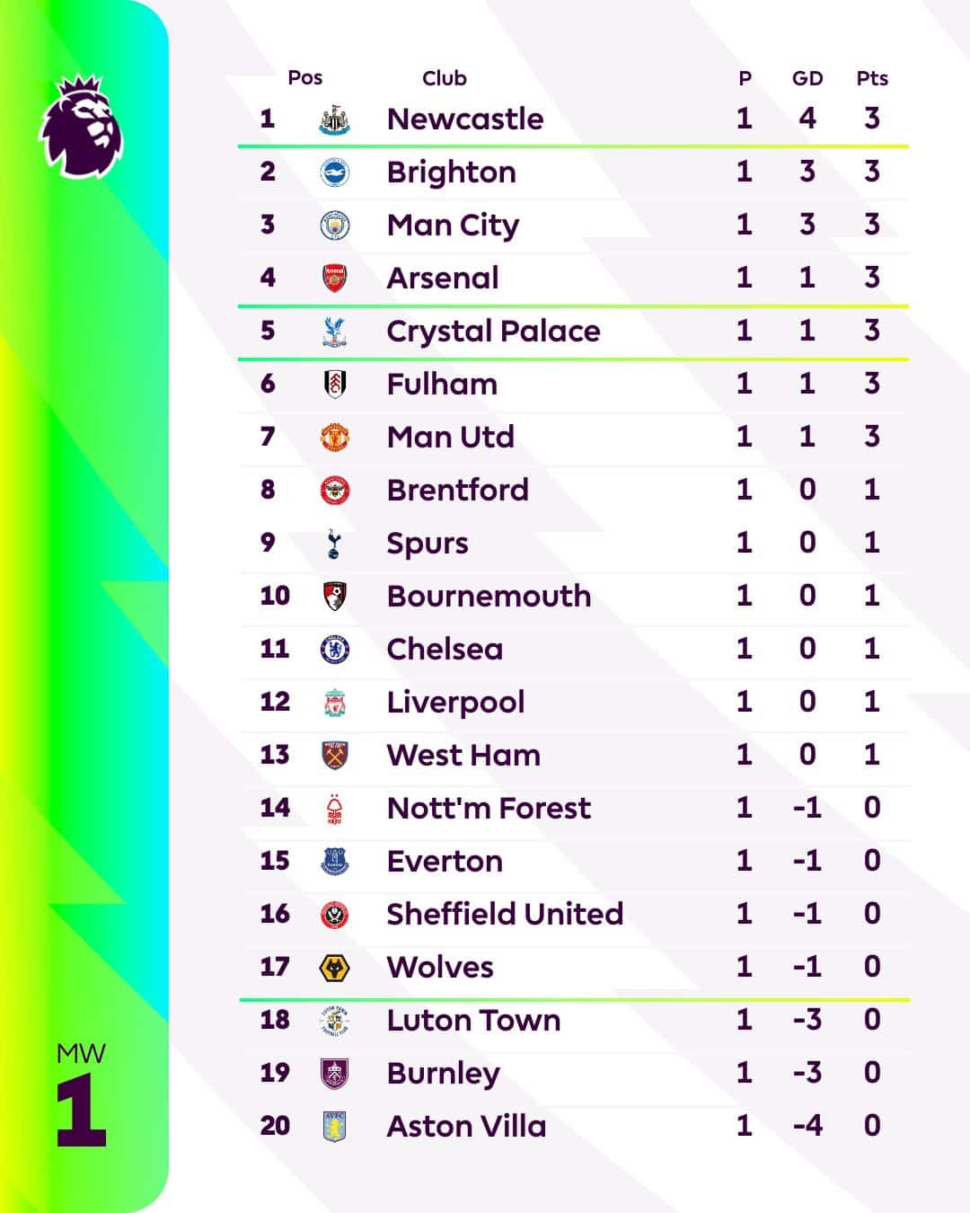 สรุปผลการแข่งขัน พรีเมียร์ลีก อังกฤษ 2023/24 หลังจบนัดที่ 1