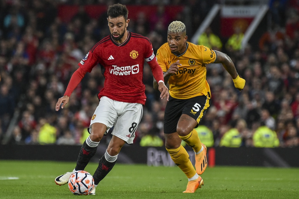 Manchester United’s Mason Mount, right, leaves the pitch after being substituted with Manchester United’s Christian Eriksen during the English Premier League soccer match between Manchester United and Wolverhampton at the Old Trafford stadium in Manchester, England, Monday, Aug. 14, 2023. (AP Photo/Rui Vieira)Manchester United’s goalkeeper Andre Onana reacts during the English Premier League soccer match between Manchester United and Wolverhampton at the Old Trafford stadium in Manchester, England, Monday, Aug. 14, 2023. (AP Photo/Rui Vieira)Wolverhampton Wanderers’ Matheus Nunes, right, duels for the ball with Manchester United’s Marcus Rashford during the English Premier League soccer match between Manchester United and Wolverhampton at the Old Trafford stadium in Manchester, England, Monday, Aug. 14, 2023. (AP Photo/Rui Vieira)Manchester United’s Bruno Fernandes runs during the English Premier League soccer match between Manchester United and Wolverhampton at the Old Trafford stadium in Manchester, England, Monday, Aug. 14, 2023. (AP Photo/Rui Vieira)Manchester United’s Bruno Fernandes, left, duels for the ball with Wolverhampton Wanderers’ Mario Lemina during the English Premier League soccer match between Manchester United and Wolverhampton at the Old Trafford stadium in Manchester, England, Monday, Aug. 14, 2023. (AP Photo/Rui Vieira)Manchester United’s Antony, right, duels for the ball with Wolverhampton Wanderers’ Rayan Ait-Nouri during the English Premier League soccer match between Manchester United and Wolverhampton at the Old Trafford stadium in Manchester, England, Monday, Aug. 14, 2023. (AP Photo/Rui Vieira)Manchester United’s Alejandro Garnacho, center, duels for the ball with Wolverhampton Wanderers’ Matheus Cunha, right, during the English Premier League soccer match between Manchester United and Wolverhampton at the Old Trafford stadium in Manchester, England, Monday, Aug. 14, 2023. (AP Photo/Rui Vieira)
