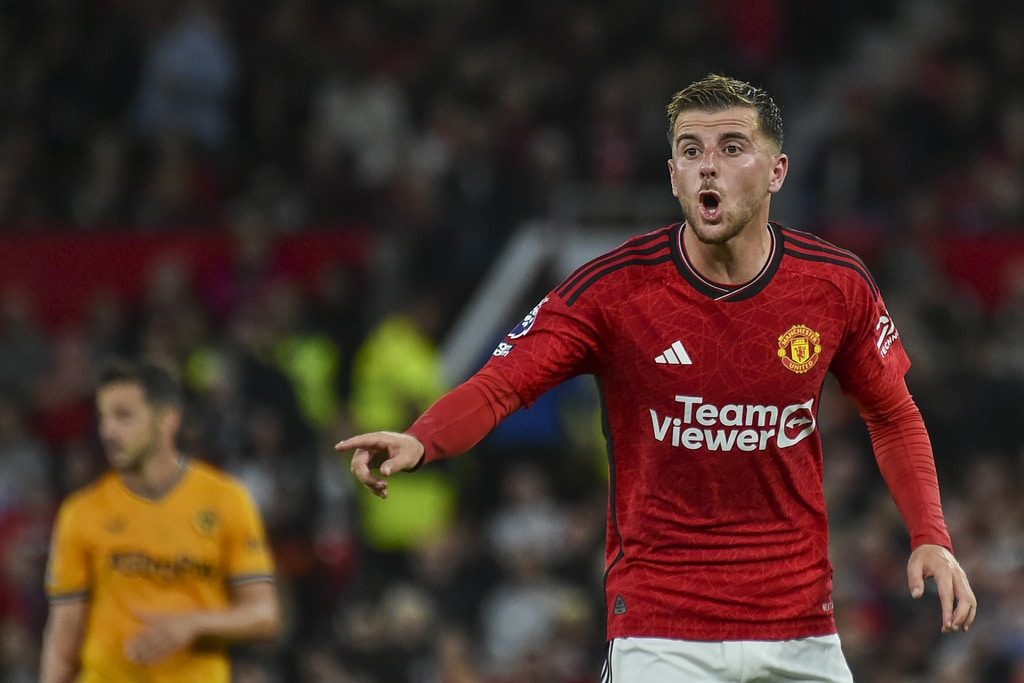 Manchester United’s Mason Mount reacts during the English Premier League soccer match between Manchester United and Wolverhampton at the Old Trafford stadium in Manchester, England, Monday, Aug. 14, 2023. (AP Photo/Rui Vieira)