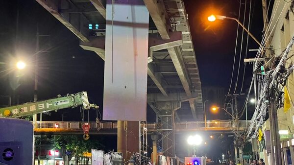 แผ่นเหล็กคานสะพาน แยกบางกะปิ ตกใส่คนงาน บาดเจ็บ 2 ราย และเสียชีวิต 1 ศพ ยังไม่ทราบสาเหตุ เตรียมติดต่อผู้คุมมาสอบปากคำ