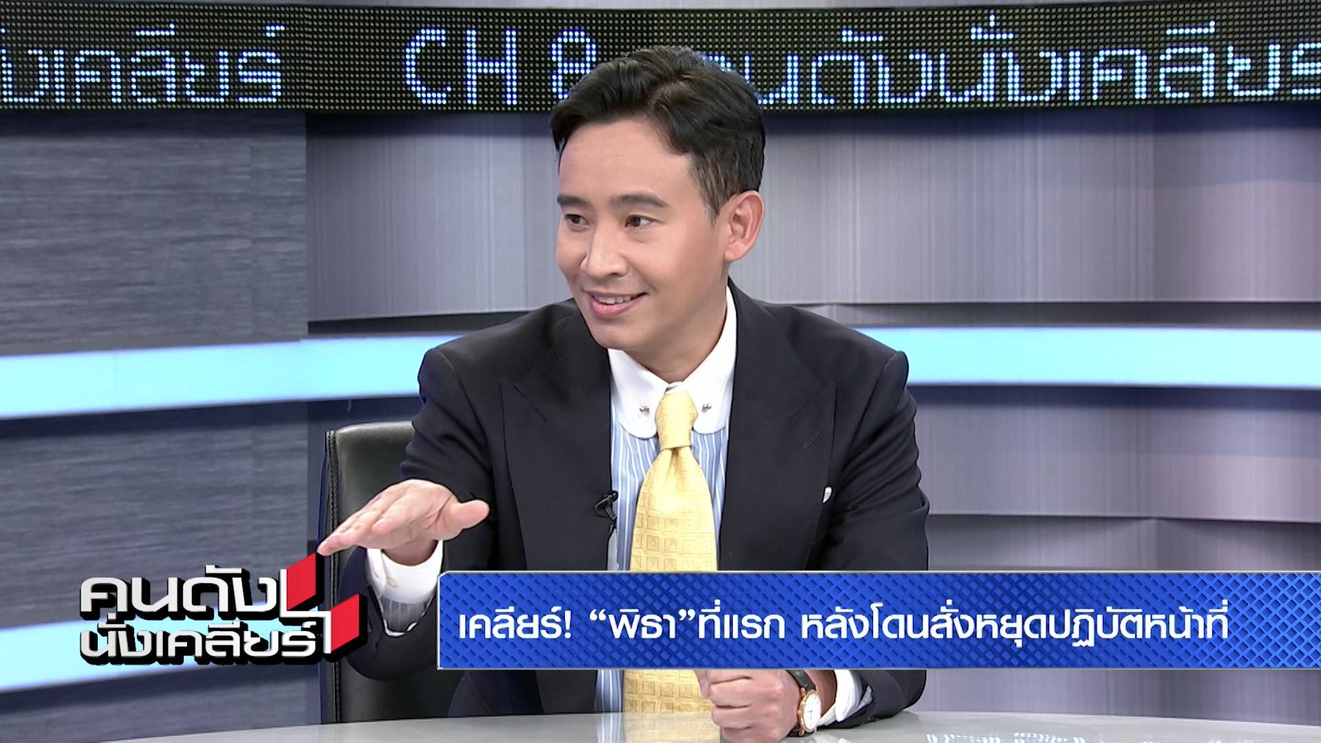 หลังจากที่ พิธา ลิ้มเจริญรัตน์ หัวหน้าพรรคก้าวไกล โดนสั่งให้ยุติปฏิบัติหน้าที่ สมาชิกสภาผู้แทนราษฎร หรือ ส.ส. แถมล่าสุดในวันอังคารที่ 22 สิงหาคม 2566 ก็จะมีการโหวตนายกรัฐมนตรีคนที่ 30 ของประเทศไทยอย่างเป็นทางการอีกครั้ง ทำให้งานนี้รายการคนดังนั่งเคลียร์ ทางสถานีโทรทัศน์ช่อง 8 จึงไม่รอช้า ด้วยกาเชิญเจ้าตัวมาพบปะร่วมพูดคุยเปิดใจประเด็นดังที่แรก หลังจากที่เจ้าตัวหายเงียบมานาน พร้อมล้วงลึกที่พรรคเพื่อไทยขอนัดเคลียร์ปัญหาใจที่ไม่ได้เดินต่อไปกับพรรคก้าวไกล และความสัมพันธ์กับนางเอก “แอฟ” ทักษอร ภักดิ์สุขเจริญ ว่าตกลงทั้งคู่อยู่ในสถานะอะไรกันแน่