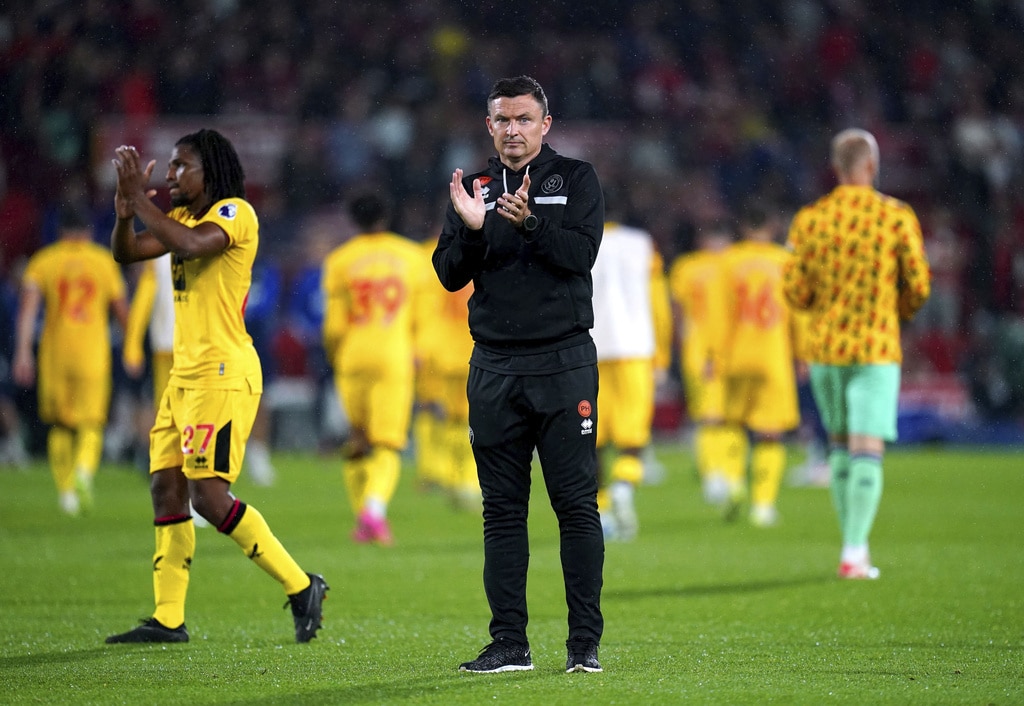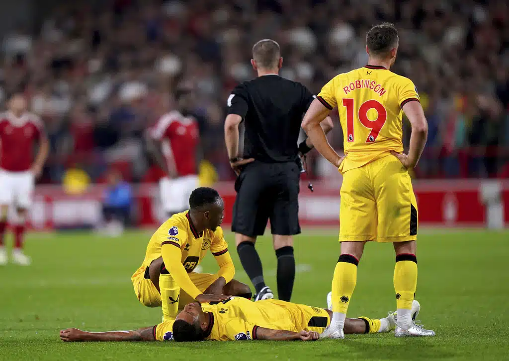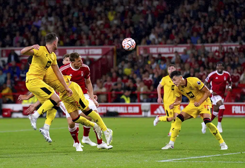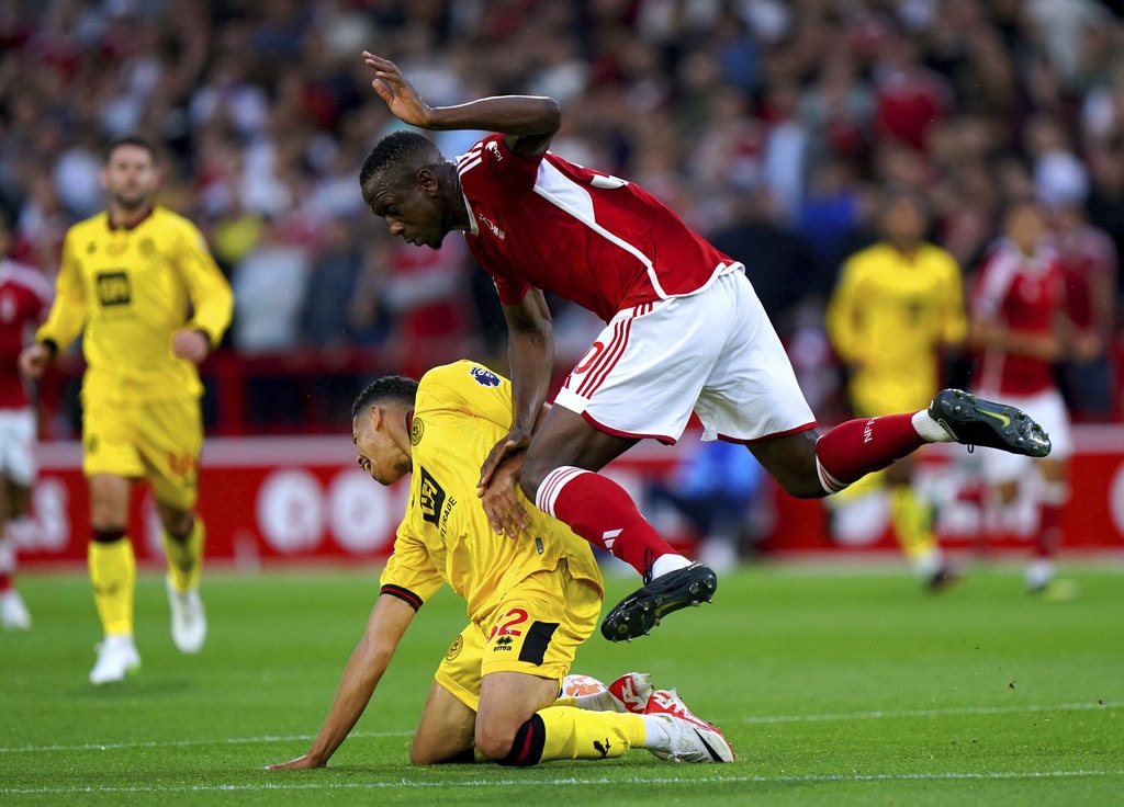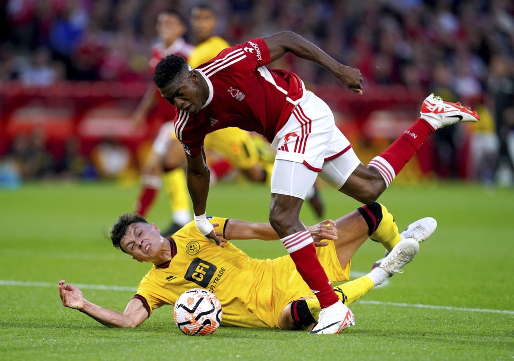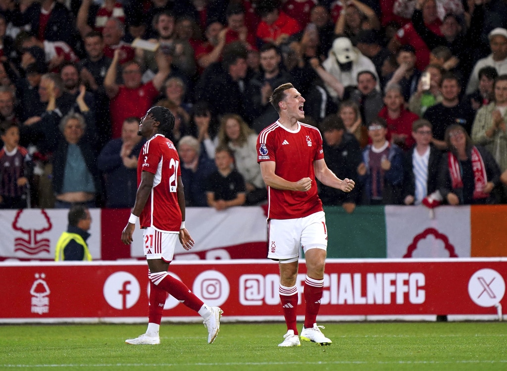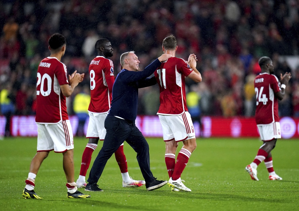 Nottingham Forest manager Steve Cooper celebrates with Chris Wood after the English Premier League soccer match between Nottingham Forest and Sheffield United, at the City Ground, in Nottingham, England, Friday, Aug. 18, 2023. (Nick Potts/PA via AP)Sheffield United manager Paul Heckingbottom applauds the fans after the English Premier League soccer match between Nottingham Forest and Sheffield United, at the City Ground, in Nottingham, England, Friday, Aug. 18, 2023. (Nick Potts/PA via AP)Nottingham Forest’s Chris Wood celebrates scoring his side’s second goal of the game, during the English Premier League soccer match between Nottingham Forest and Sheffield United, at the City Ground, in Nottingham, England, Friday, Aug. 18, 2023. (Tim Goode/PA via AP)Nottingham Forest’s Chris Wood scores his side’s second goal of the game, during the English Premier League soccer match between Nottingham Forest and Sheffield United, at the City Ground, in Nottingham, England, Friday, Aug. 18, 2023. (Tim Goode/PA via AP)Sheffield United’s Vinicius Souza lays on the pitch injured, during the English Premier League soccer match between Nottingham Forest and Sheffield United, at the City Ground, in Nottingham, England, Friday, Aug. 18, 2023. (Tim Goode/PA via AP)Nottingham Forest’s Taiwo Awoniyi, right, and Sheffield United’s Anel Ahmedhodzic go down as they battle for the ball during the English Premier League soccer match between Nottingham Forest and Sheffield United, at the City Ground, in Nottingham, England, Friday, Aug. 18, 2023. (Nick Potts/PA via AP)Nottingham Forest’s Morgan Gibbs-White takes a corner, during the English Premier League soccer match between Nottingham Forest and Sheffield United, at the City Ground, in Nottingham, England, Friday, Aug. 18, 2023. (Nick Potts/PA via AP)Nottingham Forest’s Willy Boly, right, clashes into Sheffield United’s William Osula as they battle for the ball, during the English Premier League soccer match between Nottingham Forest and Sheffield United, at the City Ground, in Nottingham, England, Friday, Aug. 18, 2023. (Tim Goode/PA via AP)Nottingham Forest’s Taiwo Awoniyi, left celebrates scoring a goal with teammate Neco Williams, during the English Premier League soccer match between Nottingham Forest and Sheffield United, at the City Ground, in Nottingham, England, Friday, Aug. 18, 2023. (Nick Potts/PA via AP)