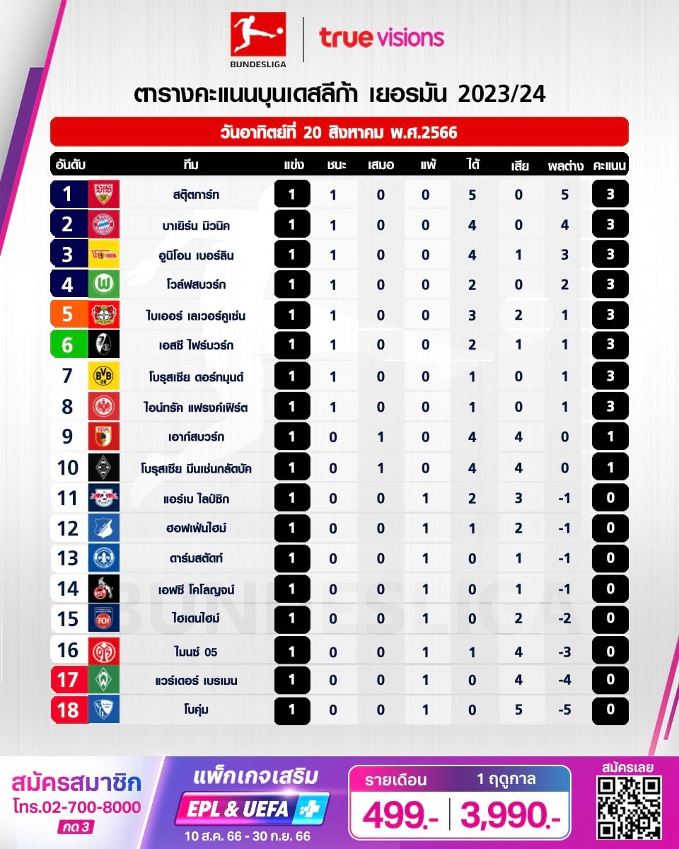>> ตารางคะแนน บุนเดสลีกา เยอรมัน 2023 2024 ล่าสุด เช็คคะแนนทุกทีมได้ที่นี่ <<