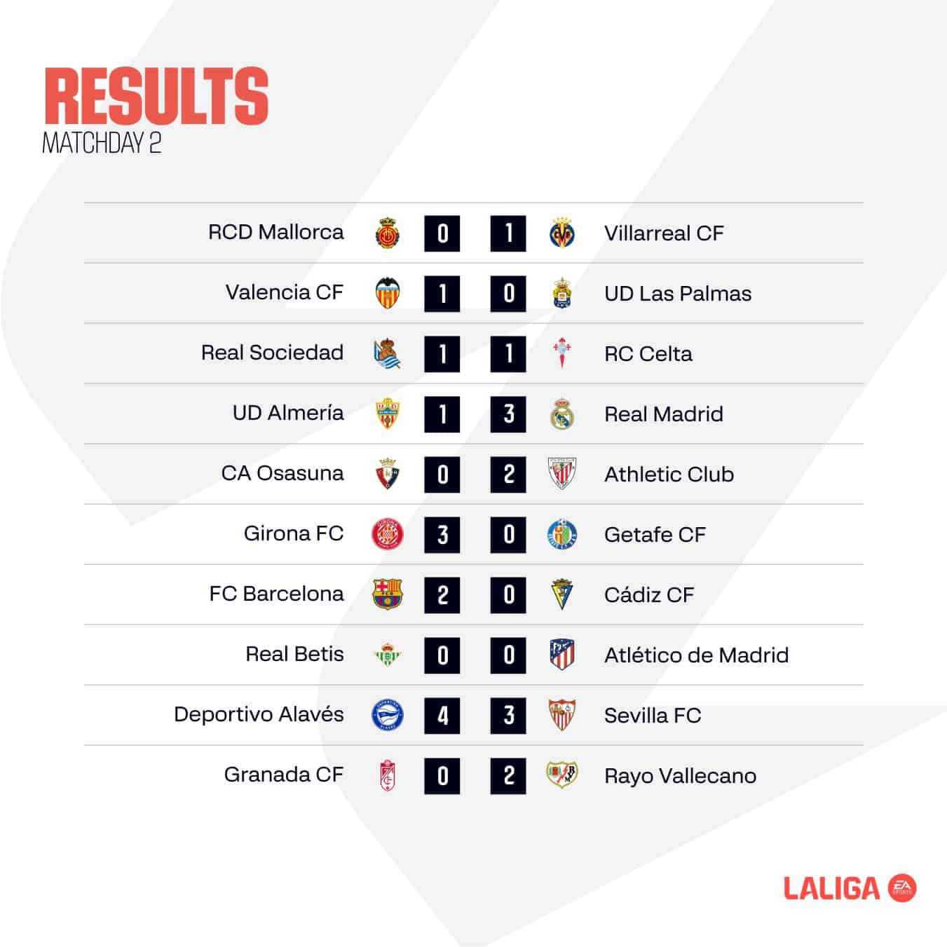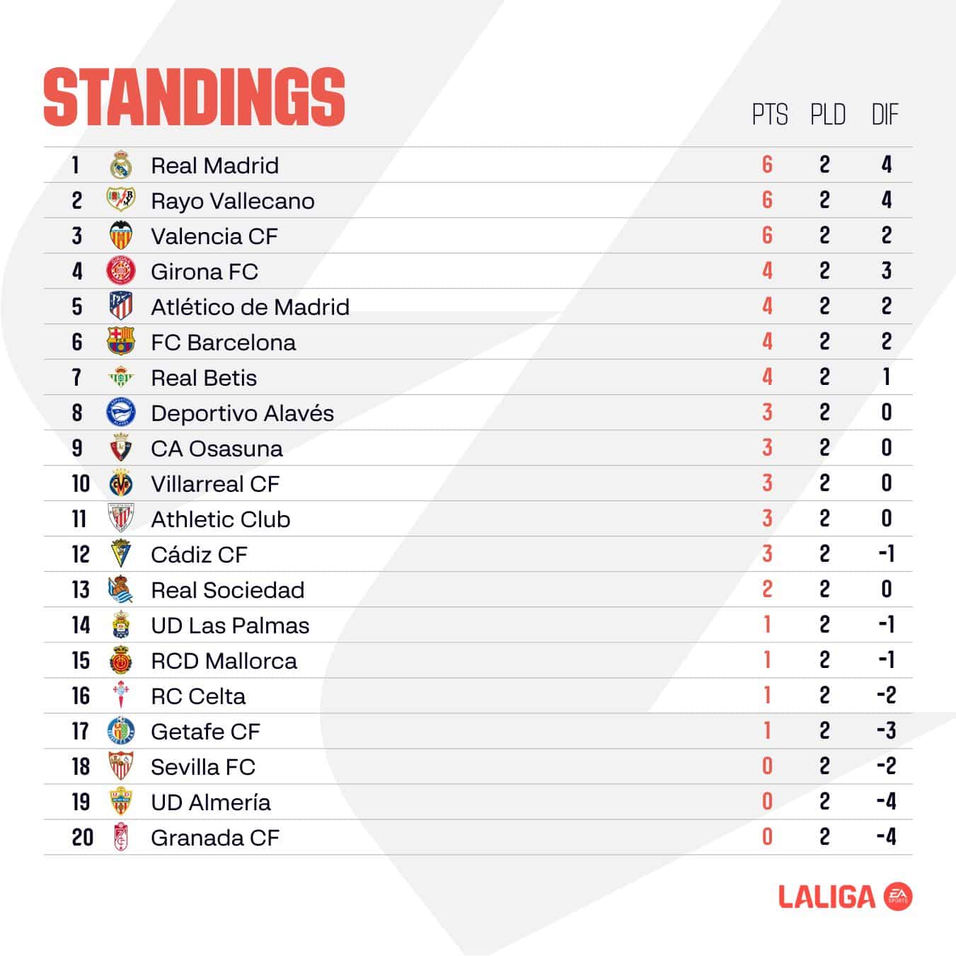 สรุปผลการแข่งขัน ลาลีกา สเปน 2023/24 หลังจบนัดที่ 2