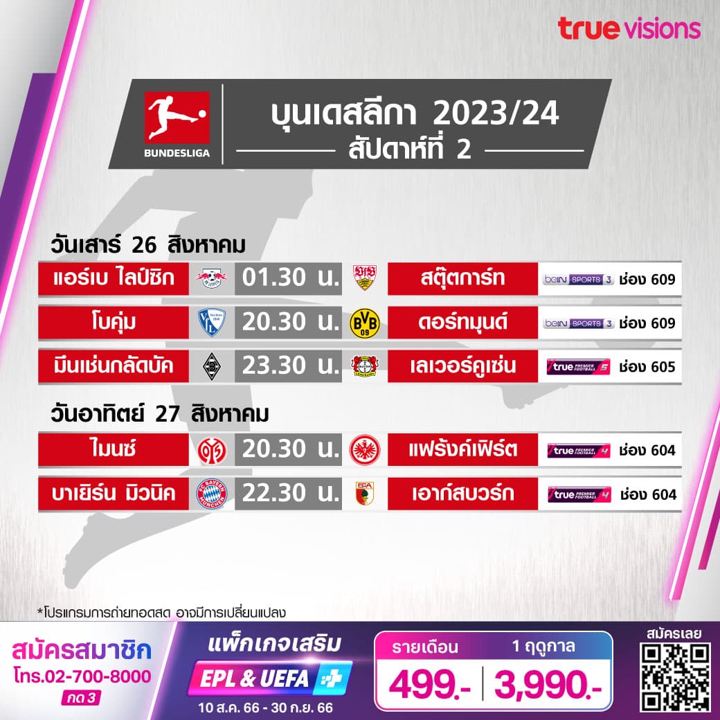 - 22:30 บาเยิร์น พบ เอาก์สบวร์ก PPTV / True Sports 5