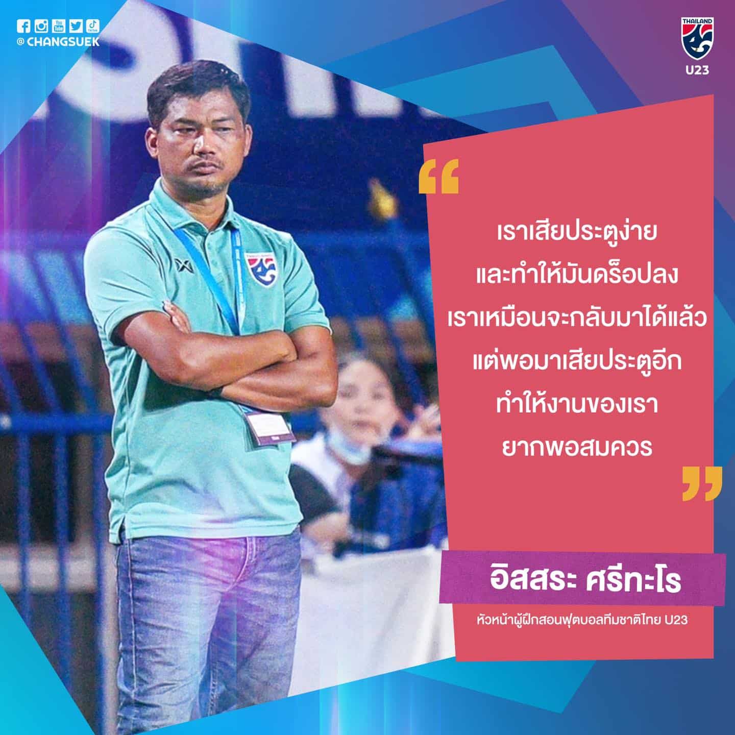 “การที่นักเตะชุดนี้ไม่ใช่ตัวหลักมันเป็นแค่ส่วนหนึ่ง แต่มันมีสิ่งที่ดี คือได้เห็นความชัดเจน ในการรับมือกับความกดดัน ที่เกมต้องตัดสินในเกมเดียว ก็คงเป็นเรื่องสภาพจิตใจ และแท็คติก ที่เราเตรียมมา เกมแบบนี้ ถ้าจิตใจเราไม่แกร่ง หรือฝึกซ้อมไม่เพียงพอ มันก็ผ่านไปได้ยาก ต้องยอมรับว่าเราทำได้ไม่ดีจริงๆ หลังจากที่ปรับเปลี่ยนอะไรลงไป”