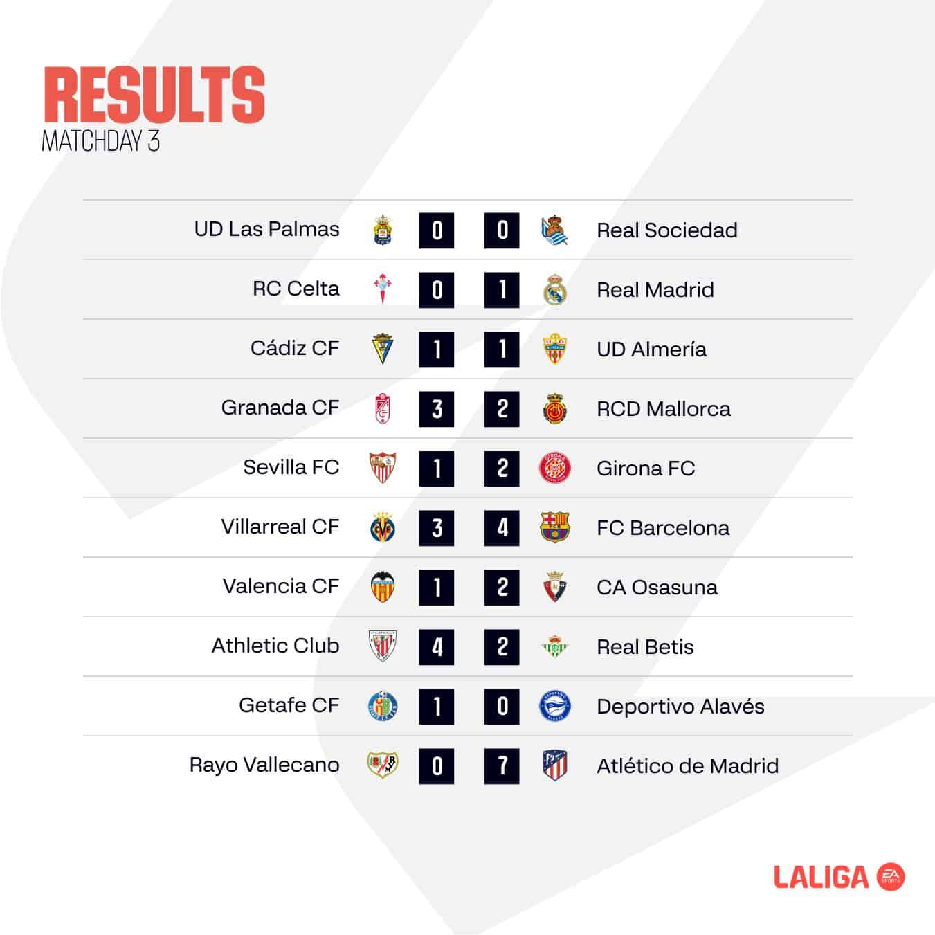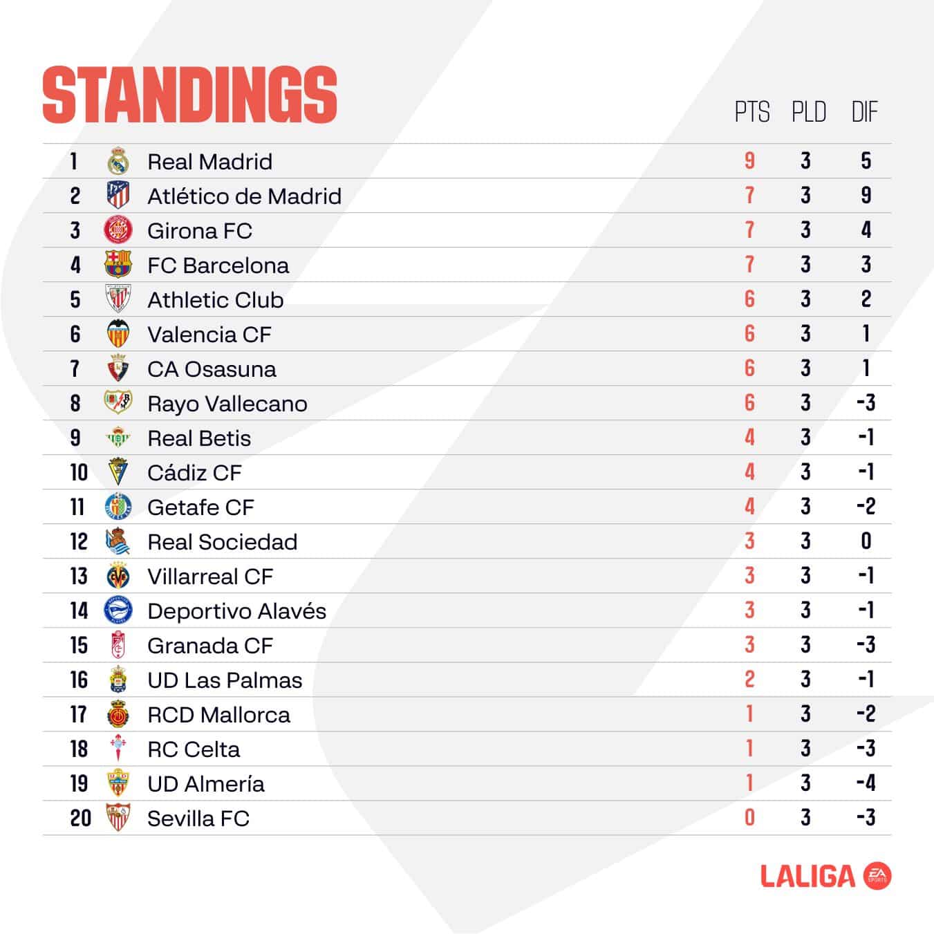 สรุปผล การแข่งขัน ลาลีกา สเปน 2023/24 หลังจบนัดที่ 3