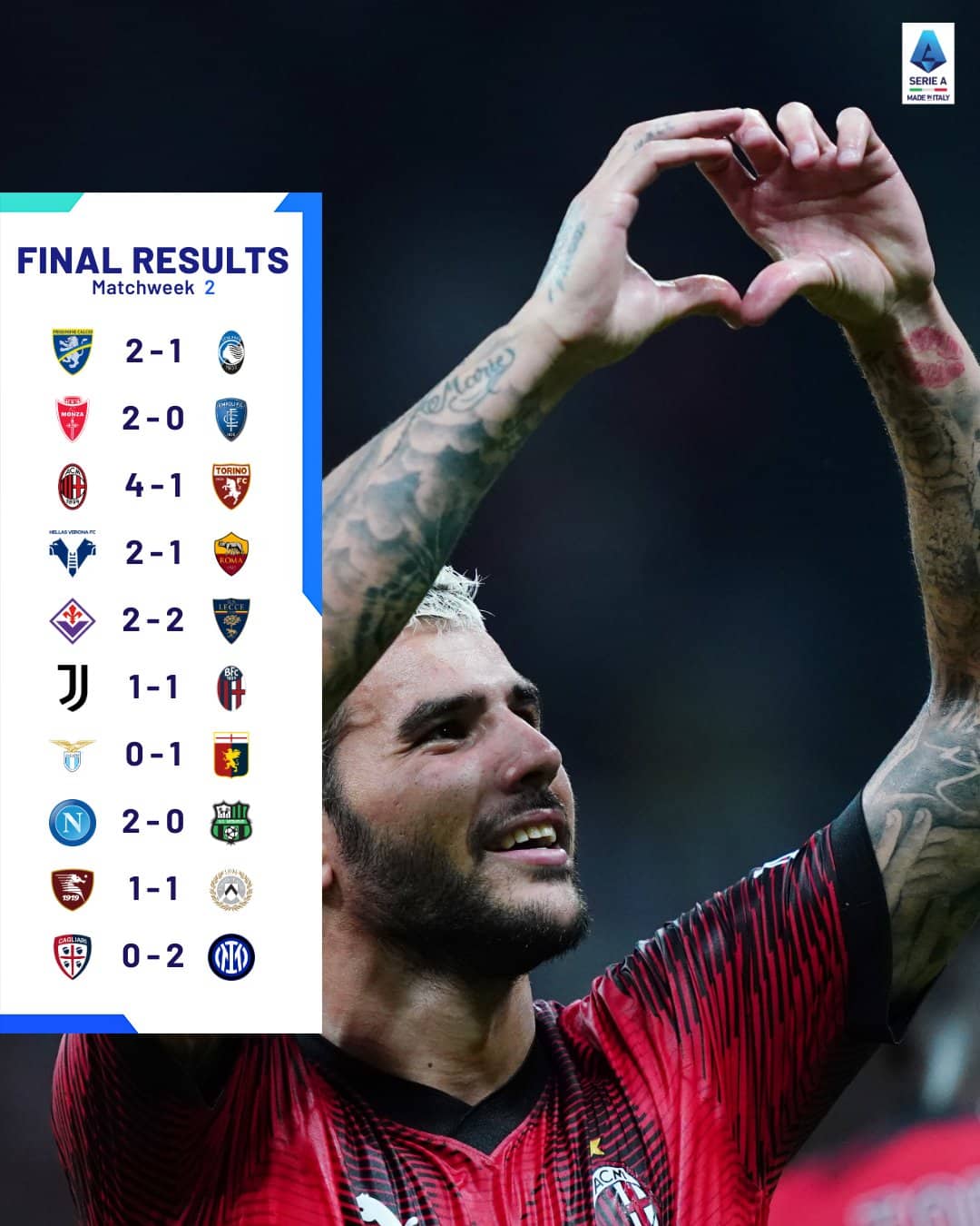 สรุปผลการแข่งขัน กัลโช่ เซเรียอา 2023/24 หลังจบนัดที่ 2