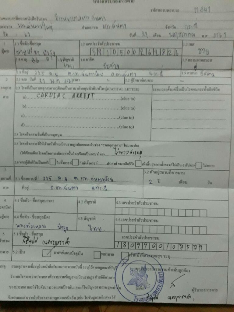 เพราะในใบรับการตายแพทย์ยังได้ระบุว่าลูกชายของตนเสียชีวิตมาแล้วไม่ต่ำกว่า 4 ชั่วโมง จึงเป็นไปไม่ได้ที่คนอยู่บ้านเดียวกันจะไม่รู้ ว่าสามีตัวเองเสียชีวิต ปล่อยเวลาให้ล่วงเลย 4-5 ชั่วโมง จึงอยากเรียกร้องขอความเป็นธรรมให้กับลูกชายด้วย