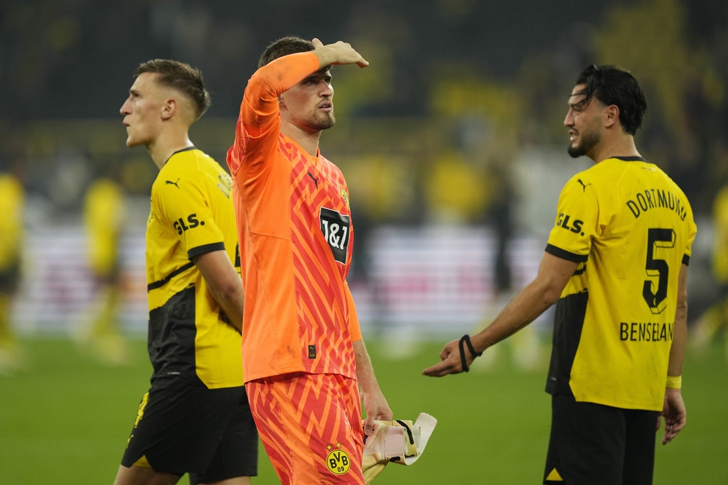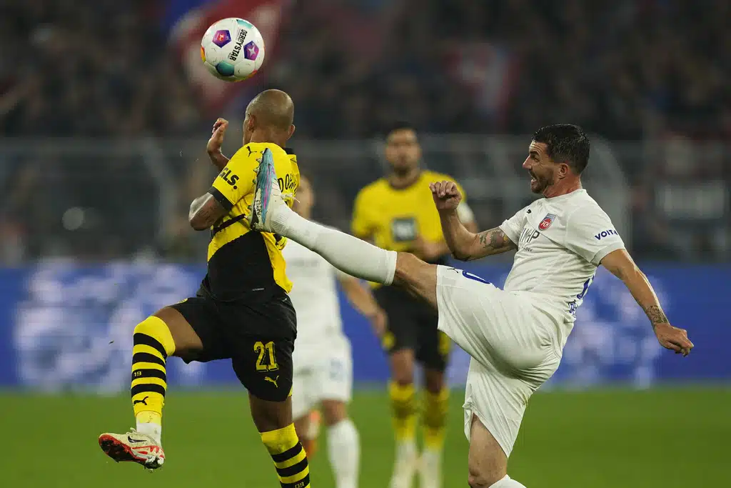Dortmund’s Emre Can, second from right, and Nico Schlotterbeck argue with referee Tobias Reichel during the German Bundesliga soccer match between Borussia Dortmund and FC Heidenheim in Dortmund, Germany, Friday, Sept. 1, 2023. (AP Photo/Martin Meissner)Heidenheim’s Tim Kleindienst, second from right, celebrates with teammates after scoring his side’s second goal during the German Bundesliga soccer match between Borussia Dortmund and FC Heidenheim in Dortmund, Germany, Friday, Sept. 1, 2023. (AP Photo/Martin Meissner)Dortmund’s Sebastien Haller, left, fouls for a penalty on Heidenheim’s Jan-Niklas Beste during the German Bundesliga soccer match between Borussia Dortmund and FC Heidenheim in Dortmund, Germany, Friday, Sept. 1, 2023. (AP Photo/Martin Meissner)Heidenheim’s Norman Theuerkauf, right, and Dortmund’s Donyell Malen challenge for the ball during the German Bundesliga soccer match between Borussia Dortmund and FC Heidenheim in Dortmund, Germany, Friday, Sept. 1, 2023. (AP Photo/Martin Meissner)Dortmund’s Marcel Sabitzer shoots on target during the German Bundesliga soccer match between Borussia Dortmund and FC Heidenheim in Dortmund, Germany, Friday, Sept. 1, 2023. (AP Photo/Martin Meissner)Dortmund’s fans support their team during the German Bundesliga soccer match between Borussia Dortmund and FC Heidenheim in Dortmund, Germany, Friday, Sept. 1, 2023. (AP Photo/Martin Meissner)Dortmund’s Karim Adeyemi smiles during the German Bundesliga soccer match between Borussia Dortmund and FC Heidenheim in Dortmund, Germany, Friday, Sept. 1, 2023. (AP Photo/Martin Meissner)Dortmund’s Niklas Suele, left, and Nico Schlotterbeck react after the German Bundesliga soccer match between Borussia Dortmund and FC Heidenheim in Dortmund, Germany, Friday, Sept. 1, 2023. (AP Photo/Martin Meissner)Dortmund’s team players react after the German Bundesliga soccer match between Borussia Dortmund and FC Heidenheim in Dortmund, Germany, Friday, Sept. 1, 2023. (AP Photo/Martin Meissner)Dortmund’s goalkeeper Gregor Kobel, centre, reacts after the German Bundesliga soccer match between Borussia Dortmund and FC Heidenheim in Dortmund, Germany, Friday, Sept. 1, 2023. (AP Photo/Martin Meissner)Dortmund’s team players react after the German Bundesliga soccer match between Borussia Dortmund and FC Heidenheim in Dortmund, Germany, Friday, Sept. 1, 2023. (AP Photo/Martin Meissner)