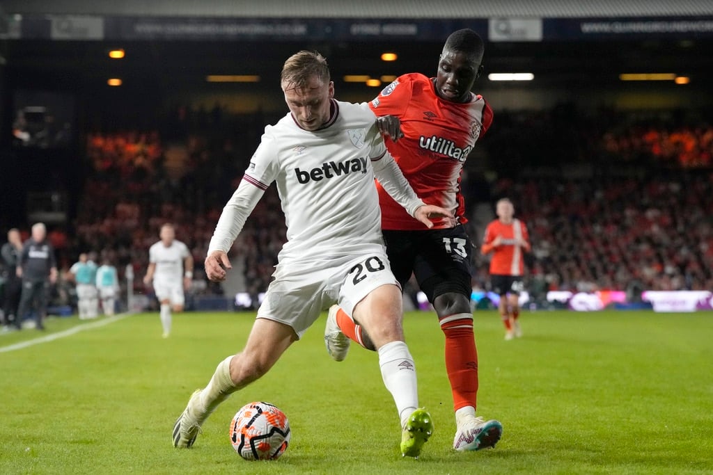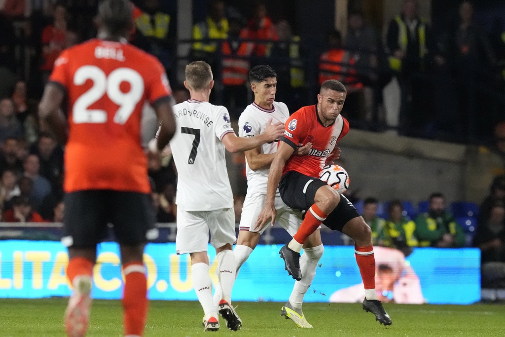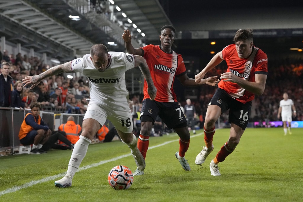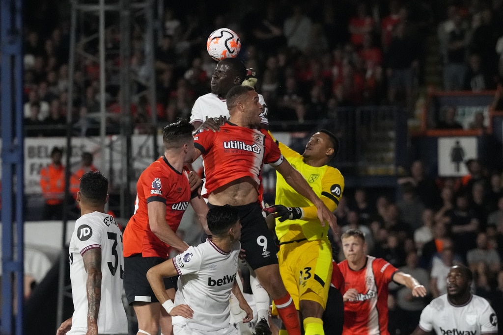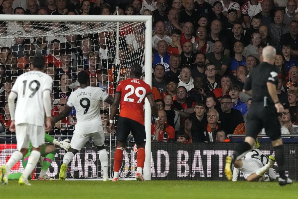 West Ham’s manager David Moyes gestures as he watches his team play during the English Premier League soccer match between Luton Town against West Ham United, in Luton, England, Friday, Sept. 1, 2023. (AP Photo/Frank Augstein)West Ham’s Danny Ings, left holds off the challenges of Luton Town’s Chiedozie Ogbene, centre and Luton Town’s Reece Burke during the English Premier League soccer match between Luton Town against West Ham United, in Luton, England, Friday, Sept. 1, 2023. (AP Photo/Frank Augstein)Luton Town’s Carlton Morris, right controls the ball under pressure from West Ham’s Nayef Aguerd during the English Premier League soccer match between Luton Town against West Ham United, in Luton, England, Friday, Sept. 1, 2023. (AP Photo/Frank Augstein)West Ham’s Lucas Paqueta, defends the ball from Luton Town’s Marvelous Nakamba during the English Premier League soccer match between Luton Town against West Ham United, in Luton, England, Friday, Sept. 1, 2023. (AP Photo/Frank Augstein)Luton Town’s Amari’i Bell, left, vies for the ball with West Ham’s Jarrod Bowen during the English Premier League soccer match between Luton Town against West Ham United, in Luton, England, Friday, Sept. 1, 2023. (AP Photo/Frank Augstein)West Ham’s Michail Antonio, right its for the ball with Luton Town’s Amari’i Bell during the English Premier League soccer match between Luton Town against West Ham United, in Luton, England, Friday, Sept. 1, 2023. (AP Photo/Frank Augstein)West Ham’s Jarrod Bowen, left, celebrates after scoring the opening goal of the game during the English Premier League soccer match between Luton Town against West Ham United, in Luton, England, Friday, Sept. 1, 2023. (AP Photo/Frank Augstein)West Ham’s Jarrod Bowen, (20) on the ground at right, scores the opening goal of the game during the English Premier League soccer match between Luton Town against West Ham United, in Luton, England, Friday, Sept. 1, 2023. (AP Photo/Frank Augstein)Luton Town’s Tahith Chong, left is challenged by West Ham’s Edson Alvarez during the English Premier League soccer match between Luton Town against West Ham United, in Luton, England, Friday, Sept. 1, 2023. (AP Photo/Frank Augstein)West Ham’s goalkeeper Alphonse Areola attempts to punch the ball clear as West Ham’s Kurt Zouma heads the ball during the English Premier League soccer match between Luton Town against West Ham United, in Luton, England, Friday, Sept. 1, 2023. (AP Photo/Frank Augstein)