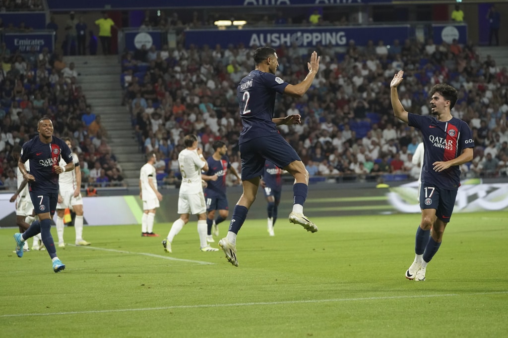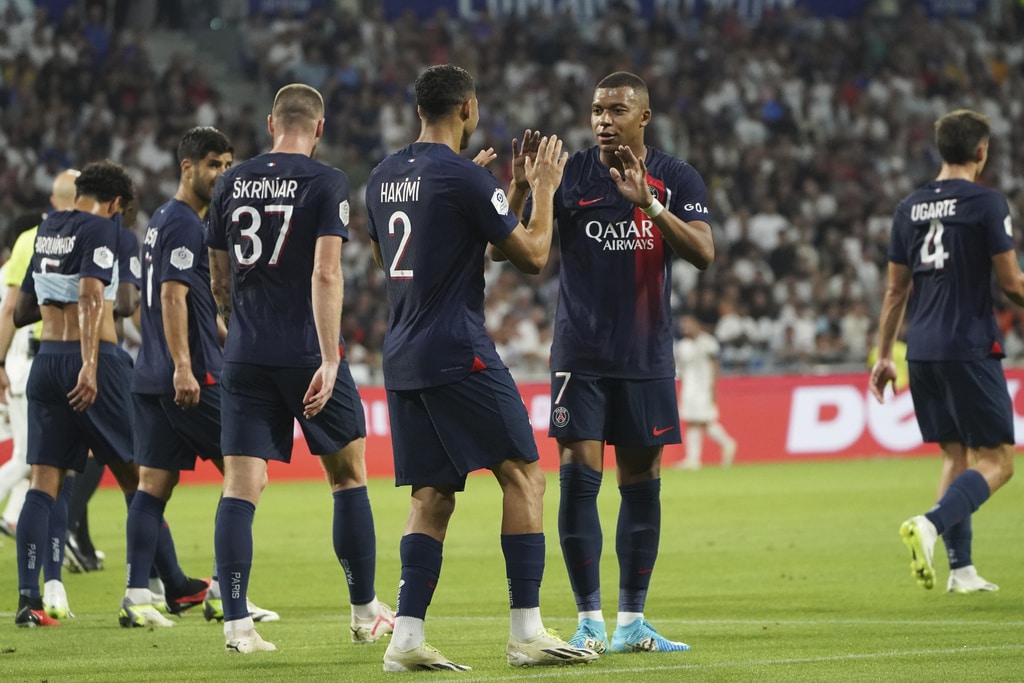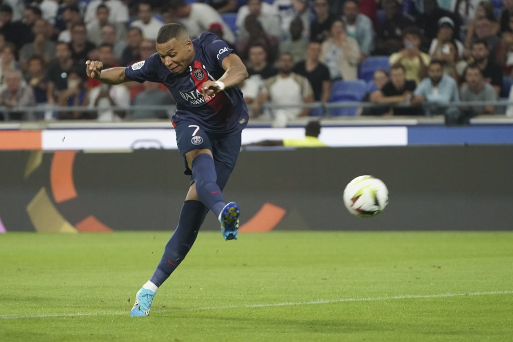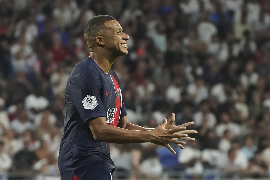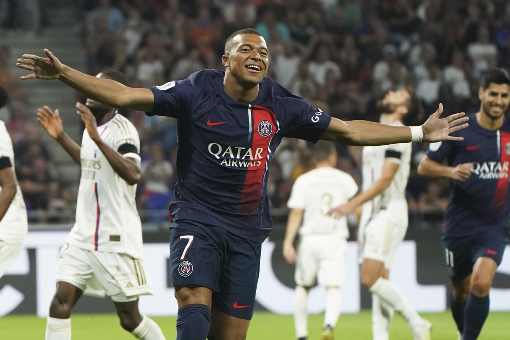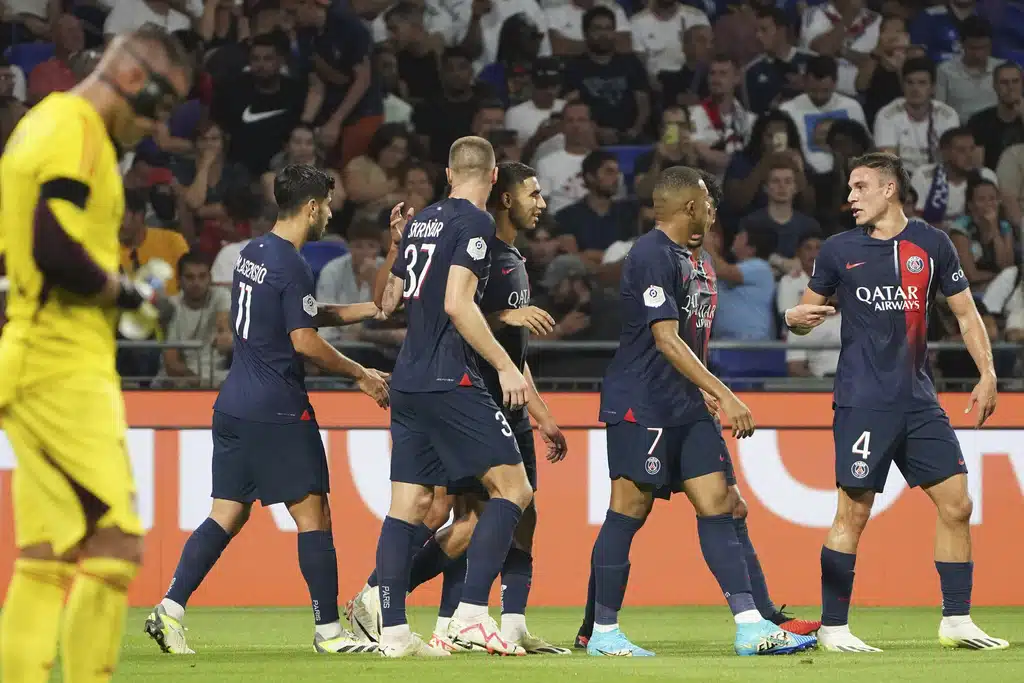 PSG’s Bradley Barcola, centre, and Lyon’s Nicolas Tagliafico challenge for the ball during the French League One soccer match between Lyon and Paris Saint-Germain at the Groupama stadium, outside Lyon, France, Sunday, Sept. 3, 2023. (AP Photo/Laurent Cipriani)PSG’s Kylian Mbappe, centre, challenges for the ball with Lyon’s Clinton Mata, left, and Ainsley Maitland-Niles during the French League One soccer match between Lyon and Paris Saint-Germain at the Groupama stadium, outside Lyon, France, Sunday, Sept. 3, 2023. (AP Photo/Laurent Cipriani)PSG’s Warren Zaire-Emery, centre, and Lyon’s Sinaly Diomande challenge for the ball during the French League One soccer match between Lyon and Paris Saint-Germain at the Groupama stadium, outside Lyon, France, Sunday, Sept. 3, 2023. (AP Photo/Laurent Cipriani)PSG’s Achraf Hakimi, centre, and Lyon’s Nicolas Tagliafico challenge for the ball during the French League One soccer match between Lyon and Paris Saint-Germain at the Groupama stadium, outside Lyon, France, Sunday, Sept. 3, 2023. (AP Photo/Laurent Cipriani)PSG’s Kylian Mbappe shoots on target during the French League One soccer match between Lyon and Paris Saint-Germain at the Groupama stadium, outside Lyon, France, Sunday, Sept. 3, 2023. (AP Photo/Laurent Cipriani)PSG’s Kylian Mbappe celebrates after scoring his side’s fourth goal during the French League One soccer match between Lyon and Paris Saint-Germain at the Groupama stadium, outside Lyon, France, Sunday, Sept. 3, 2023. (AP Photo/Laurent Cipriani)PSG’s Achraf Hakimi, left, celebrates with Kylian Mbappe after scoring his side’s second goal during the French League One soccer match between Lyon and Paris Saint-Germain at the Groupama stadium, outside Lyon, France, Sunday, Sept. 3, 2023. (AP Photo/Laurent Cipriani)PSG’s Achraf Hakimi, centre, celebrates with Kylian Mbappe, right, after scoring his side’s second goal during the French League One soccer match between Lyon and Paris Saint-Germain at the Groupama stadium, outside Lyon, France, Sunday, Sept. 3, 2023. (AP Photo/Laurent Cipriani)PSG’s Achraf Hakimi, centre, celebrates with Vitinha, right, and Kylian Mbappe, left, after scoring his side’s second goal during the French League One soccer match between Lyon and Paris Saint-Germain at the Groupama stadium, outside Lyon, France, Sunday, Sept. 3, 2023. (AP Photo/Laurent Cipriani)PSG’s Kylian Mbappe celebrates after scoring the opening goal during the French League One soccer match between Lyon and Paris Saint-Germain at the Groupama stadium, outside Lyon, France, Sunday, Sept. 3, 2023. (AP Photo/Laurent Cipriani)PSG’s Achraf Hakimi, centre left, celebrates with Kylian Mbappe after scoring his side’s second goal during the French League One soccer match between Lyon and Paris Saint-Germain at the Groupama stadium, outside Lyon, France, Sunday, Sept. 3, 2023. (AP Photo/Laurent Cipriani)PSG’s Kylian Mbappe celebrates after scoring the opening goal during the French League One soccer match between Lyon and Paris Saint-Germain at the Groupama stadium, outside Lyon, France, Sunday, Sept. 3, 2023. (AP Photo/Laurent Cipriani)PSG’s Achraf Hakimi, centre, celebrates with Vitinha, right, and Kylian Mbappe after scoring his side’s second goal during the French League One soccer match between Lyon and Paris Saint-Germain at the Groupama stadium, outside Lyon, France, Sunday, Sept. 3, 2023. (AP Photo/Laurent Cipriani)PSG’s Kylian Mbappe celebrates after scoring the opening goal during the French League One soccer match between Lyon and Paris Saint-Germain at the Groupama stadium, outside Lyon, France, Sunday, Sept. 3, 2023. (AP Photo/Laurent Cipriani)