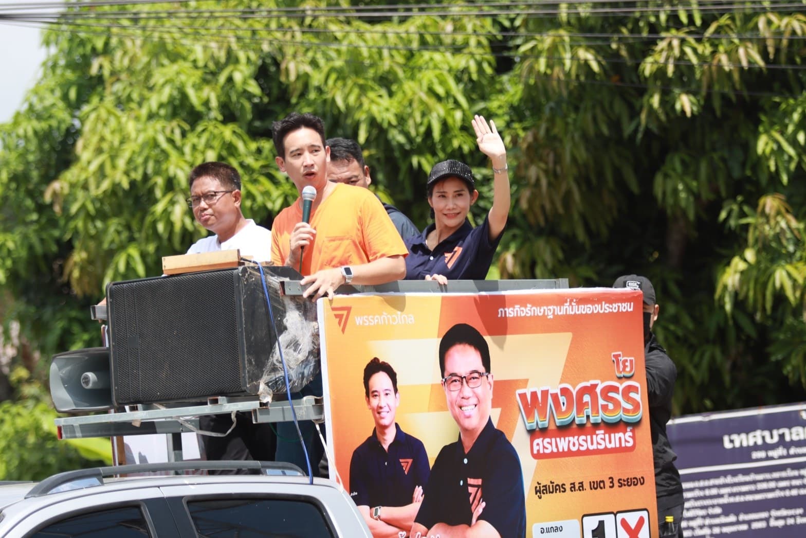 นายพิธา ลิ้มเจริญรัตน์ หัวหน้าพรรคก้าวไกล เดินทางลงพื้นที่ในจังหวัดระยอง เพื่อช่วยนายพงศธร ศรเพชรนรินทร์ ผู้สมัครเลือกตั้งซ่อม เขต 3 จ.ระยอง เบอร์ 1 หาเสียง โดยทั้งสองได้ร่วมกันขึ้นรถแห่เดินสายหาเสียงไปตามถนนเส้นหลักของ ต.กระแสบน อ.แกลง