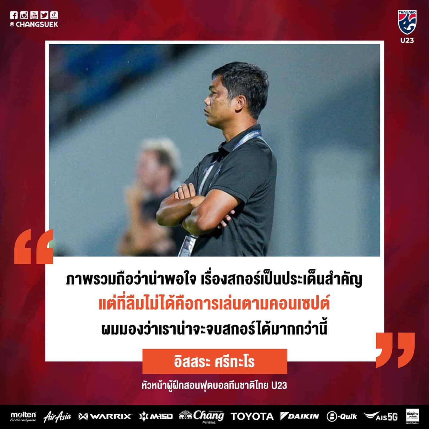 อิสสระ ศรีทะโร หวังว่า ทีมชาติไทย U23 จะทำได้ดีกว่านี้อีกในเกมนัดต่อไป หลังเริ่มต้น ศึกชิงแชมป์เอเชีย รุ่นอายุไม่เกิน 23 ปี ด้วยชัยชนะ