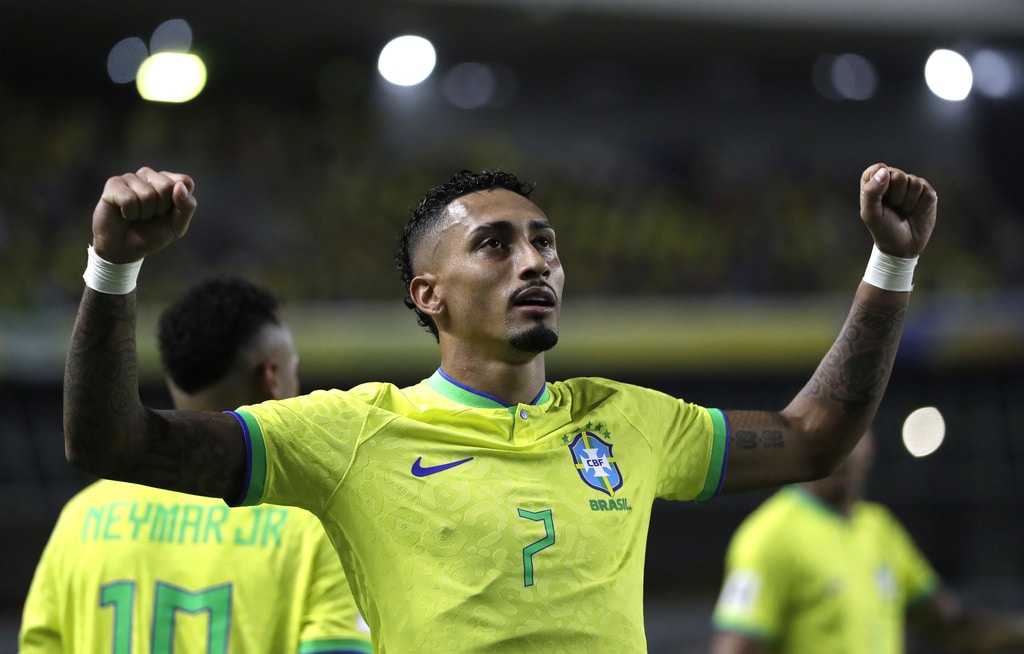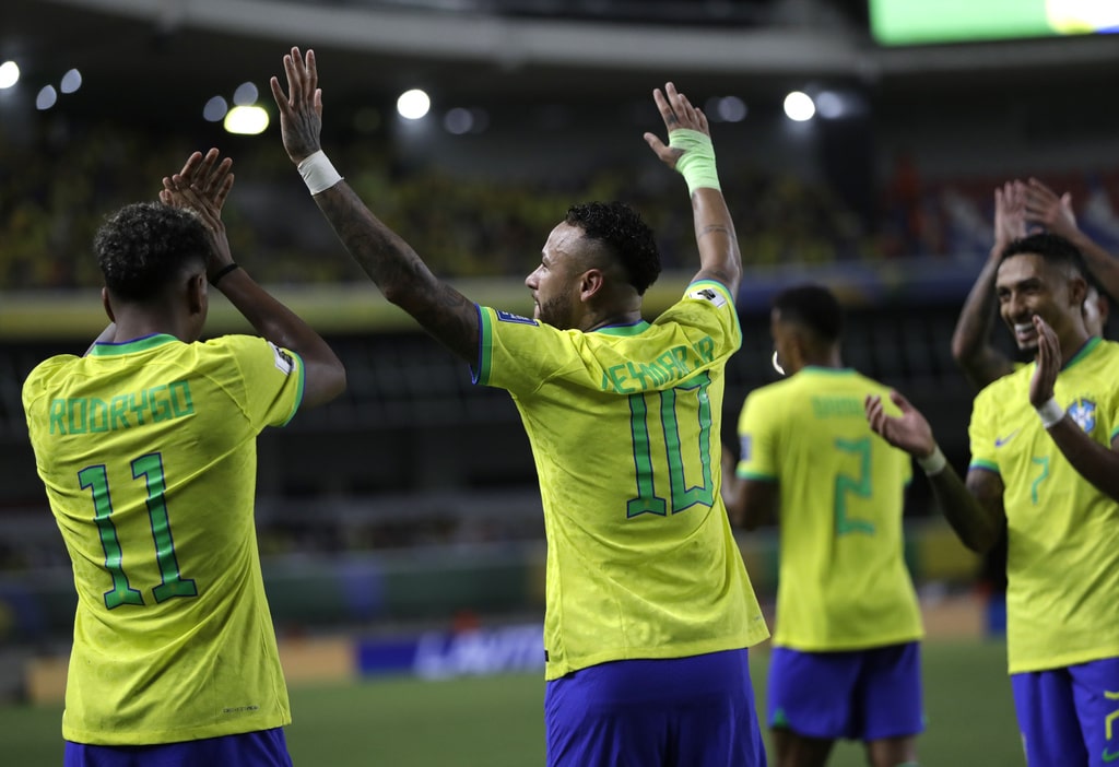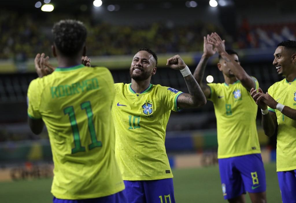 Brazil’s Neymar, center, makes an attempt to score during a qualifying soccer match for the FIFA World Cup 2026 against Bolivia at Mangueirao stadium in Belem, Brazil, Friday, Sept. 8, 2023. (AP Photo/Bruna Prado)Brazil’s Neymar celebrates scoring his side’s 5th goal against Bolivia during a qualifying soccer match for the FIFA World Cup 2026 at Mangueirao stadium in Belem, Brazil, Friday, Sept. 8, 2023. (AP Photo/Bruna Prado)Brazil’s Casemiro, center, waves to fans at the end of a qualifying soccer match for the FIFA World Cup 2026 against Bolivia at Mangueirao stadium in Belem, Brazil, Friday, Sept. 8, 2023. Brazil won 5-1. (AP Photo/Bruna Prado)Brazil’s Neymar, center, and Brazil’s coach Fernando Diniz leave the pitch after a qualifying soccer match for the FIFA World Cup 2026 against Bolivia at Mangueirao stadium in Belem, Brazil, Friday, Sept. 8, 2023. Brazil won 5-1. (AP Photo/Bruna Prado)Brazil’s Neymar celebrates scoring his side’s 5th goal against Bolivia during a qualifying soccer match for the FIFA World Cup 2026 at Mangueirao stadium in Belem, Brazil, Friday, Sept. 8, 2023. (AP Photo/Bruna Prado)Brazil’s Neymar celebrates scoring his side’s 5th goal against Bolivia during a qualifying soccer match for the FIFA World Cup 2026 at Mangueirao stadium in Belem, Brazil, Friday, Sept. 8, 2023. (AP Photo/Bruna Prado)Brazil’s Neymar celebrates scoring his side’s 5th goal against Bolivia during a qualifying soccer match for the FIFA World Cup 2026 at Mangueirao stadium in Belem, Brazil, Friday, Sept. 8, 2023. (AP Photo/Bruna Prado)Brazil’s Neymar celebrates scoring his side’s 5th goal against Bolivia during a qualifying soccer match for the FIFA World Cup 2026 at Mangueirao stadium in Belem, Brazil, Friday, Sept. 8, 2023. (AP Photo/Bruna Prado)Brazil’s Neymar celebrates scoring his side’s 5th goal against Bolivia during a qualifying soccer match for the FIFA World Cup 2026 at Mangueirao stadium in Belem, Brazil, Friday, Sept. 8, 2023. (AP Photo/Bruna Prado)Brazil’s Neymar, center, celebrates scoring his side’s 4th goal against Bolivia during a qualifying soccer match for the FIFA World Cup 2026 at Mangueirao stadium in Belem, Brazil, Friday, Sept. 8, 2023. (AP Photo/Bruna Prado)Brazil’s Neymar celebrates with teammates after scoring his side’s 4th goal against Bolivia during a qualifying soccer match for the FIFA World Cup 2026 at Mangueirao stadium in Belem, Brazil, Friday, Sept. 8, 2023. (AP Photo/Bruna Prado)Brazil’s Neymar, 2nd left, celebrates with teammates after scoring his side’s 4th goal against Bolivia during a qualifying soccer match for the FIFA World Cup 2026 at Mangueirao stadium in Belem, Brazil, Friday, Sept. 8, 2023. (AP Photo/Bruna Prado)Brazil’s Rodrygo scores his side’s 3rd goal against Bolivia during a qualifying soccer match for the FIFA World Cup 2026 at Mangueirao stadium in Belem, Brazil, Friday, Sept. 8, 2023. (AP Photo/Bruna Prado)Brazil’s Raphinha, left, celebrates with Brazil’s Neymar, center, and Brazil’s Casemiro after scoring his side’s second goal against Bolivia during a qualifying soccer match for the FIFA World Cup 2026 at Mangueirao stadium in Belem, Brazil, Friday, Sept. 8, 2023. (AP Photo/Bruna Prado)Brazil’s Raphinha celebrates scoring his side’s second goal against Bolivia during a qualifying soccer match for the FIFA World Cup 2026 at Mangueirao stadium in Belem, Brazil, Friday, Sept. 8, 2023. (AP Photo/Bruna Prado)Brazil’s Raphinha celebrates scoring his side’s second goal against Bolivia during a qualifying soccer match for the FIFA World Cup 2026 at Mangueirao stadium in Belem, Brazil, Friday, Sept. 8, 2023. (AP Photo/Bruna Prado)