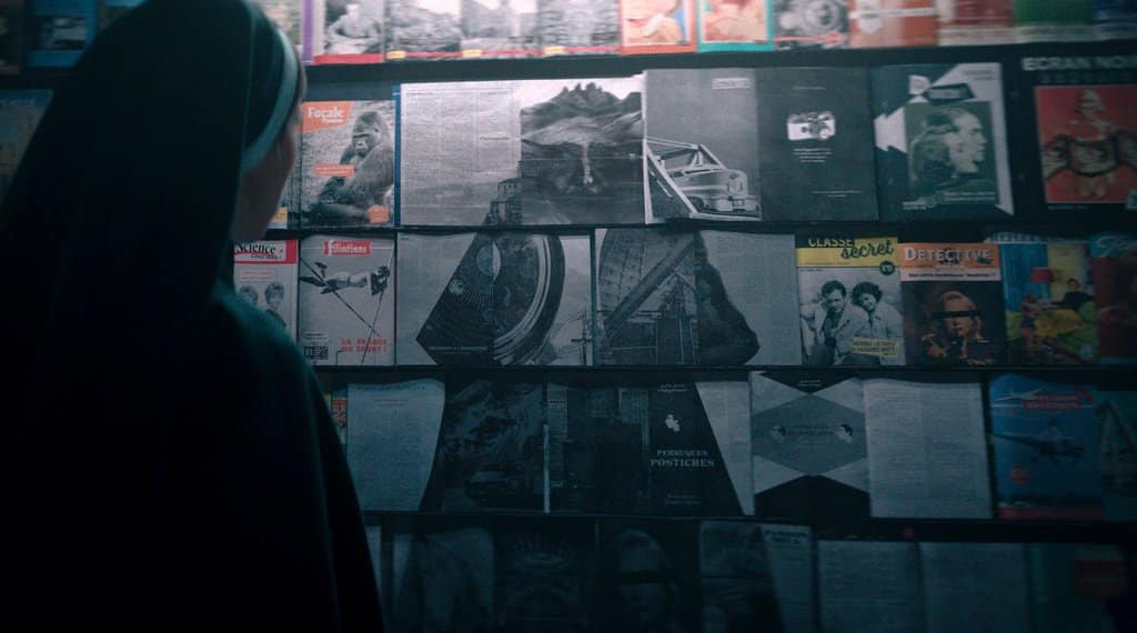 สิ่งที่น่าประทับใจที่สุดอย่างหนึ่งของภาพยนตร์เรื่องนี้ ซึ่งได้ปรากฏอยู่ในตัวอย่างภาพยนตร์ ซึ่งก็คือฉากที่ Valak พุ่งจู่โจม Sister Irene จากหน้าแผงหนังสือ โดย Michael Chaves ได้เผยว่า ความน่าหวาดกลัวเช่นนั้นส่วนใหญ่เกิดขึ้นจากสิ่งที่ปรากฏอยู่บนกล้อง เบื้องหลังในระหว่างการสร้างภาพยนตร์ เมื่อใครสักคนเสนอถึงแนวคิดนี้ “ทุกคนก็แบบว่า ‘เราจะทำแบบนั้นได้ยังไง?” ในวินาทีนั้นผมจึงคิดขึ้นว่า “เอาล่ะ เราควรทำทุกอย่างในกล้อง เราควรพิมพ์นิตยสารเหล่านี้ทั้งหมด จากนั้นจึงคิดหากลไกทำให้ทั้งหมดนั่นหมุน จากนั้นก็เป่าด้วยลม แต่สำหรับนิตยสารบางเล่มก็อาจต้องควบคุมมากขึ้นนิดหน่อย” และการทำงานหนักเช่นนั้นได้ผลตอบแทนเป็นภาพยนตร์เรื่องนี้