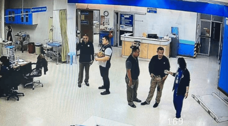 นอกจากนี้ยังมีคลิปภายในโรงพยาบาล ซึ่งเห็นได้ว่า พ.ต.อ.กฤษฎาพร จงอักษร ผกก.สน.พญาไท, พ.ต.อ.วชิรา ยาวไทยสงค์ ผกก.2 บก.ทล. และตำรวจอีกอีก 2 นาย ยืนพูดคุย ก่อนที่จะมีตำรวจสลับเข้ามาคุยกับ พ.ต.อ.กฤษฎาพร เป็นระยะๆ โดยสีหน้าของตำรวจเคร่งเครียดและมีการดูโทรศัพท์มือถือเรื่อยๆ