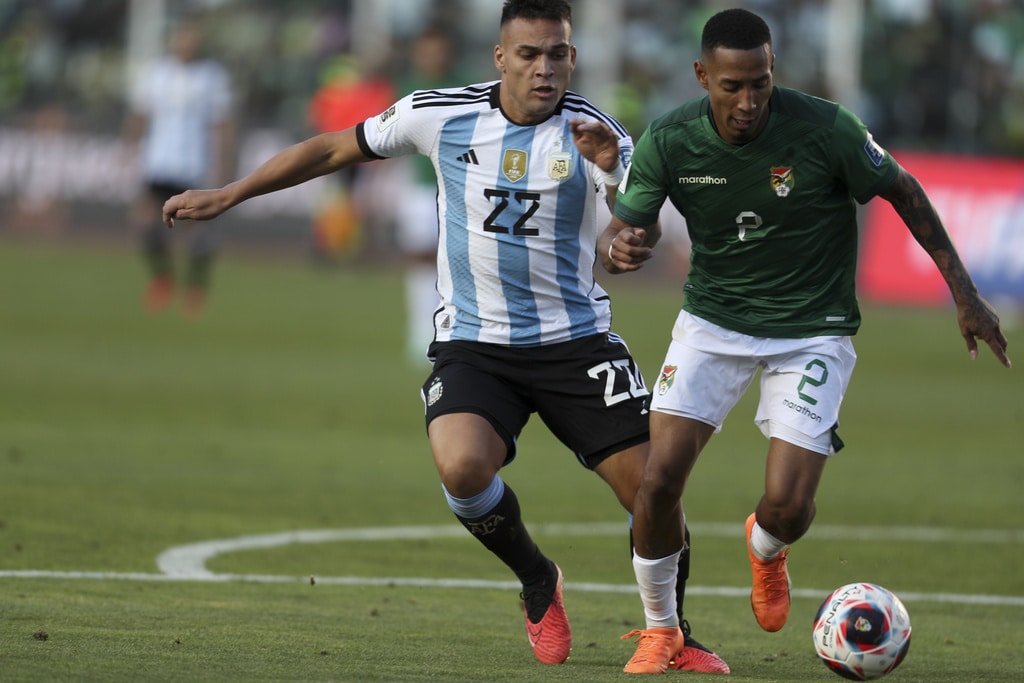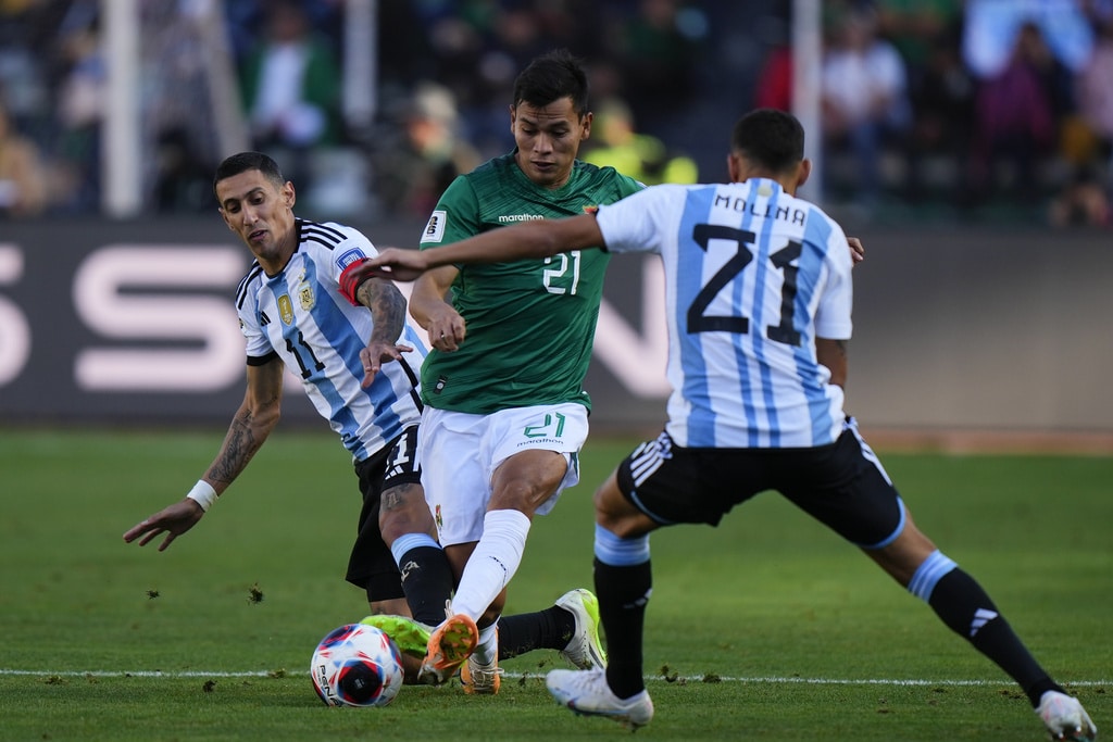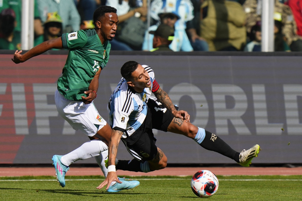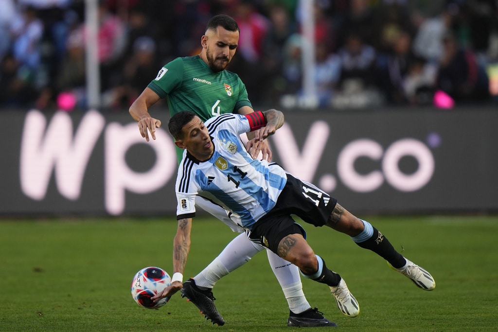 Argentina’s Lautaro Martinez, left, challenges Bolivia’s Jairo Quinteros during a qualifying soccer match for the FIFA World Cup 2026 at Hernando Siles stadium in La Paz, Bolivia, Tuesday, Sept. 12, 2023. (AP Photo/Gaston Brito)Argentina’s Angel Di Maria falls challenged by Bolivia’s Luis Haquin during a qualifying soccer match for the FIFA World Cup 2026 at the Hernando Siles stadium in La Paz, Bolivia, Tuesday, Sept. 12, 2023. (AP Photo/Juan Karita)Bolivia’s Jairo Quinteros, right, and Argentina’s Julian Alvarez vie for the ball during a qualifying soccer match for the FIFA World Cup 2026 at Hernando Siles stadium in La Paz, Bolivia, Tuesday, Sept. 12, 2023. (AP Photo/Gaston Brito)Argentina’s Angel Di Maria falls challenged by Bolivia’s Jaime Arrascaita during a qualifying soccer match for the FIFA World Cup 2026 at the Hernando Siles stadium in La Paz, Bolivia, Tuesday, Sept. 12, 2023. (AP Photo/Juan Karita)Argentina’s Nicolas Tagliafico, left, celebrates with teammate Nicolas Gonzalez after scoring his side’s second goal against Bolivia during a qualifying soccer match for the FIFA World Cup 2026 at the Hernando Siles stadium in La Paz, Bolivia, Tuesday, Sept. 12, 2023. (AP Photo/Juan Karita)Argentina’s Nicolas Otamendi (19) goes for a header with Bolivia’s Victor Abrego during a qualifying soccer match for the FIFA World Cup 2026 at Hernando Siles stadium in La Paz, Bolivia, Tuesday, Sept. 12, 2023. (AP Photo/Gaston Brito)Bolivia’s Hector Cuellar dribbles challenged by Argentina’s Angel Di Maria, left, and Nahuel Molina (21) during a qualifying soccer match for the FIFA World Cup 2026 at the Hernando Siles stadium in La Paz, Bolivia, Tuesday, Sept. 12, 2023. (AP Photo/Juan Karita)Argentina’s Nicolas Gonzalez (15) celebrates scoring his side’s third goal against Bolivia during a qualifying soccer match for the FIFA World Cup 2026 at Hernando Siles stadium in La Paz, Bolivia, Tuesday, Sept. 12, 2023. (AP Photo/Gaston Brito)Argentina’s Nicolas Gonzalez embraces teammate Exequiel Palacios after scoring his side’s third goal against Bolivia during a qualifying soccer match for the FIFA World Cup 2026 at Hernando Siles stadium in La Paz, Bolivia, Tuesday, Sept. 12, 2023. (AP Photo/Gaston Brito)