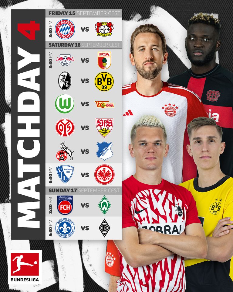 โปรแกรม บุนเดสลีกาเยอรมัน ประจำฤดูกาล 2023/24 สัปดาห์ที่ 4 ทุกคู่