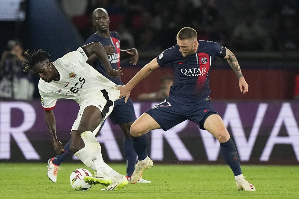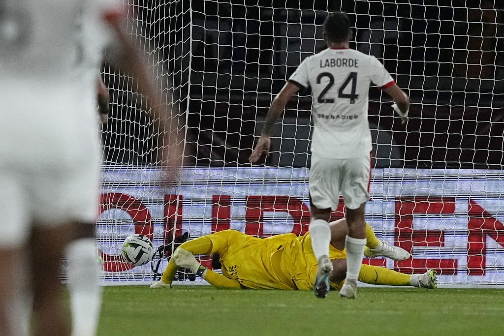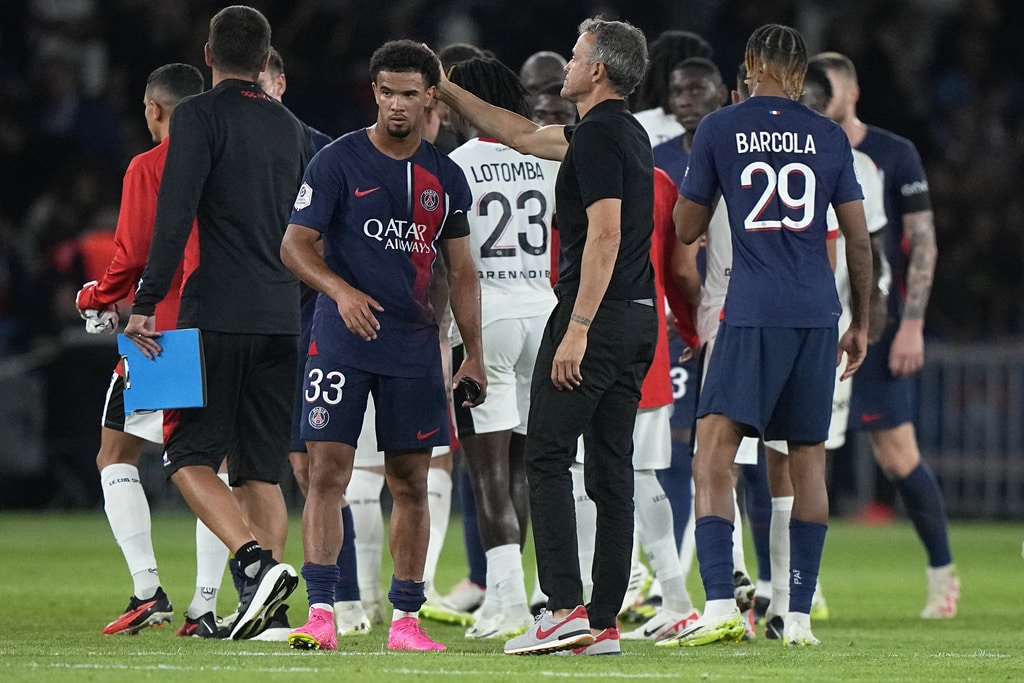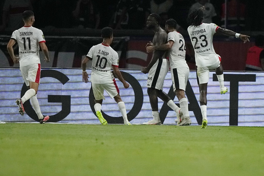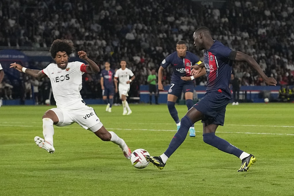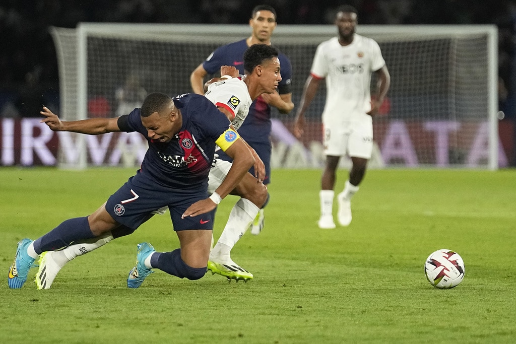 Nice’s Evann Guessand, left, challenges for the ball with PSG’s Milan Skriniar during the French League One soccer match between Paris Saint Germain and Nice at Parc des Princes stadium in Paris, Friday, Sept. 15, 2023. (AP Photo/Michel Euler)PSG’s Kylian Mbappe, left celebrates with his teammate Lucas Hernandez after scoring his side’s second goal during the French League One soccer match between Paris Saint Germain and Nice at Parc des Princes stadium in Paris, Friday, Sept. 15, 2023. (AP Photo/Michel Euler)PSG’s Kylian Mbappe celebrates after scoring his side’s second goal during the French League One soccer match between Paris Saint Germain and Nice at Parc des Princes stadium in Paris, Friday, Sept. 15, 2023. (AP Photo/Michel Euler)PSG’s Kylian Mbappe controls the ball during the French League One soccer match between Paris Saint Germain and Nice at Parc des Princes stadium in Paris, Friday, Sept. 15, 2023. (AP Photo/Michel Euler)PSG’s goalkeeper Gianluigi Donnarumma tries to stop a ball as Nice’s Terem Moffi scores his side’s third goal during the French League One soccer match between Paris Saint Germain and Nice at Parc des Princes stadium in Paris, Friday, Sept. 15, 2023. (AP Photo/Michel Euler)PSG’s Kylian Mbappe reacts after missing a scoring chance during the French League One soccer match between Paris Saint Germain and Nice at Parc des Princes stadium in Paris, Friday, Sept. 15, 2023. (AP Photo/Michel Euler)Nice’s Terem Moffi, third from left, celebrates with his teammates after scoring his side’s third goal during the French League One soccer match between Paris Saint Germain and Nice at Parc des Princes stadium in Paris, Friday, Sept. 15, 2023. (AP Photo/Michel Euler)PSG’s Kylian Mbappe reacts after missing a scoring chance during the French League One soccer match between Paris Saint Germain and Nice at Parc des Princes stadium in Paris, Friday, Sept. 15, 2023. (AP Photo/Michel Euler)Nice’s Dante, left, challenges for the ball with PSG’s Ousmane Dembele during the French League One soccer match between Paris Saint Germain and Nice at Parc des Princes stadium in Paris, Friday, Sept. 15, 2023. (AP Photo/Michel Euler)PSG’s Warren Zaire-Emery, left, jumps for the ball with Nice’s Youssouf Ndayishimiye during the French League One soccer match between Paris Saint Germain and Nice at Parc des Princes stadium in Paris, Friday, Sept. 15, 2023. (AP Photo/Michel Euler)PSG’s Goncalo Ramos, left, challenges for the ball with Nice’s Youssouf Ndayishimiye during the French League One soccer match between Paris Saint Germain and Nice at Parc des Princes stadium in Paris, Friday, Sept. 15, 2023. (AP Photo/Michel Euler)PSG’s Kylian Mbappe, right, celebrates with his teammate Achraf Hakimi after scoring his side’s opening goal during the French League One soccer match between Paris Saint Germain and Nice at Parc des Princes stadium in Paris, Friday, Sept. 15, 2023. (AP Photo/Michel Euler)PSG’s Kylian Mbappe, left, challenges for the ball with Nice’s Sofiane Diop during the French League One soccer match between Paris Saint Germain and Nice at Parc des Princes stadium in Paris, Friday, Sept. 15, 2023. (AP Photo/Michel Euler)PSG’s head coach Luis Enrique stands at the end of the French League One soccer match between Paris Saint Germain and Nice at Parc des Princes stadium in Paris, Friday, Sept. 15, 2023. (AP Photo/Michel Euler)