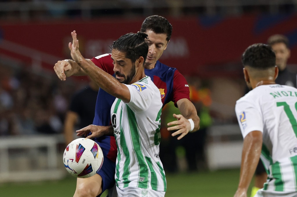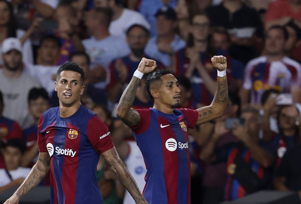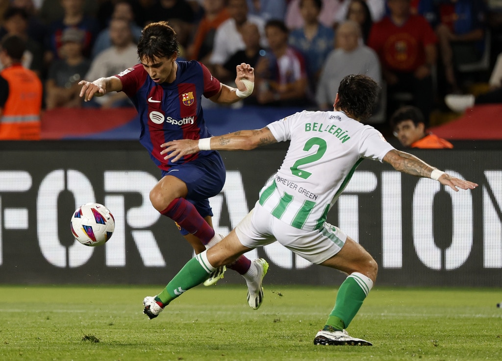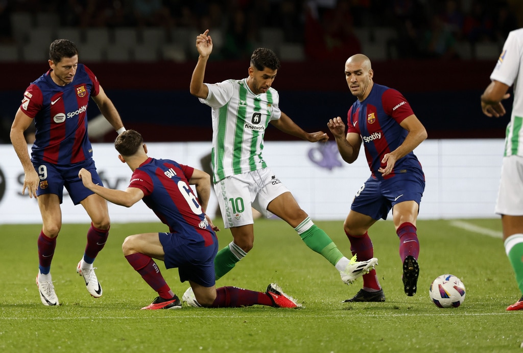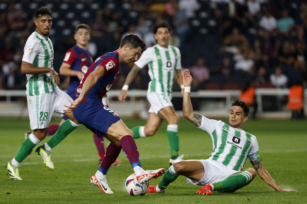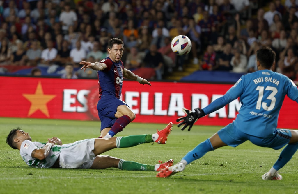 Betis’ Ayoze Perez fights for the ball with Barcelona’s Gavi and Robert Lewandowski during a Spanish La Liga soccer match between Barcelona and Betis at the Olympic Stadium of Montjuic in Barcelona, Spain, Saturday, Sept. 16, 2023. (AP Photo/Joan Monfort)Barcelona’s Pedri fights for the ball with Betis’ Sergi Altimira during a Spanish La Liga soccer match between Barcelona and Betis at the Olympic Stadium of Montjuic in Barcelona, Spain, Saturday, Sept. 16, 2023. (AP Photo/Joan Monfort)Betis’ Ayoze Perez fights for the ball with Barcelona’s Gavi, Robert Lewandowski and Pedri, right, during a Spanish La Liga soccer match between Barcelona and Betis at the Olympic Stadium of Montjuic in Barcelona, Spain, Saturday, Sept. 16, 2023. (AP Photo/Joan Monfort)Betis’ Isco fights for the ball with Barcelona’s Robert Lewandowski during a Spanish La Liga soccer match between Barcelona and Betis at the Olympic Stadium of Montjuic in Barcelona, Spain, Saturday, Sept. 16, 2023. (AP Photo/Joan Monfort)Barcelona’s Joao Felix scores his side’s first goal during a Spanish La Liga soccer match between Barcelona and Betis at the Olympic Stadium of Montjuic in Barcelona, Spain, Saturday, Sept. 16, 2023. (AP Photo/Joan Monfort)Barcelona’s Joao Felix celebrates after scoring his side’s first goal during a Spanish La Liga soccer match between Barcelona and Betis at the Olympic Stadium of Montjuic in Barcelona, Spain, Saturday, Sept. 16, 2023. (AP Photo/Joan Monfort)Barcelona’s Joao Felix fights for the ball with Betis’ Hector Bellerin during a Spanish La Liga soccer match between Barcelona and Betis at the Olympic Stadium of Montjuic in Barcelona, Spain, Saturday, Sept. 16, 2023. (AP Photo/Joan Monfort)Barcelona’s Robert Lewandowski fights for the ball trying to beat Betis’ goalkeeper Rui Silva, during a Spanish La Liga soccer match between Barcelona and Betis at the Olympic Stadium of Montjuic in Barcelona, Spain, Saturday, Sept. 16, 2023. (AP Photo/Joan Monfort)Barcelona’s Joao Felix fights for the ball with Barcelona’s Robert Lewandowski during a Spanish La Liga soccer match between Barcelona and Betis at the Olympic Stadium of Montjuic in Barcelona, Spain, Saturday, Sept. 16, 2023. (AP Photo/Joan Monfort)Barcelona’s Ferran Torres celebrate scoring his side’s third goal during a Spanish La Liga soccer match between Barcelona and Betis at the Olympic Stadium of Montjuic in Barcelona, Spain, Saturday, Sept. 16, 2023. (AP Photo/Joan Monfort)Barcelona’s Ferran Torres celebrate with Robert Lewandowski scoring his side’s third goal during a Spanish La Liga soccer match between Barcelona and Betis at the Olympic Stadium of Montjuic in Barcelona, Spain, Saturday, Sept. 16, 2023. (AP Photo/Joan Monfort)Barcelona’s Joao Cancelo fights for the ball with Betis’ Nabil Fekir during a Spanish La Liga soccer match between Barcelona and Betis at the Olympic Stadium of Montjuic in Barcelona, Spain, Saturday, Sept. 16, 2023. (AP Photo/Joan Monfort)Barcelona’s Raphinha celebrates scoring his side’s four goal during a Spanish La Liga soccer match between Barcelona and Betis at the Olympic Stadium of Montjuic in Barcelona, Spain, Saturday, Sept. 16, 2023. (AP Photo/Joan Monfort)Barcelona’s Joao Cancelo celebrates scoring his side’s fifth goal during a Spanish La Liga soccer match between Barcelona and Betis at the Olympic Stadium of Montjuic in Barcelona, Spain, Saturday, Sept. 16, 2023. (AP Photo/Joan Monfort)Barcelona’s Ferran Torres celebrate scoring his side’s third goal during a Spanish La Liga soccer match between Barcelona and Betis at the Olympic Stadium of Montjuic in Barcelona, Spain, Saturday, Sept. 16, 2023. (AP Photo/Joan Monfort)Barcelona’s Joao Cancelo celebrates scoring his side’s fifth goal during a Spanish La Liga soccer match between Barcelona and Betis at the Olympic Stadium of Montjuic in Barcelona, Spain, Saturday, Sept. 16, 2023. (AP Photo/Joan Monfort)