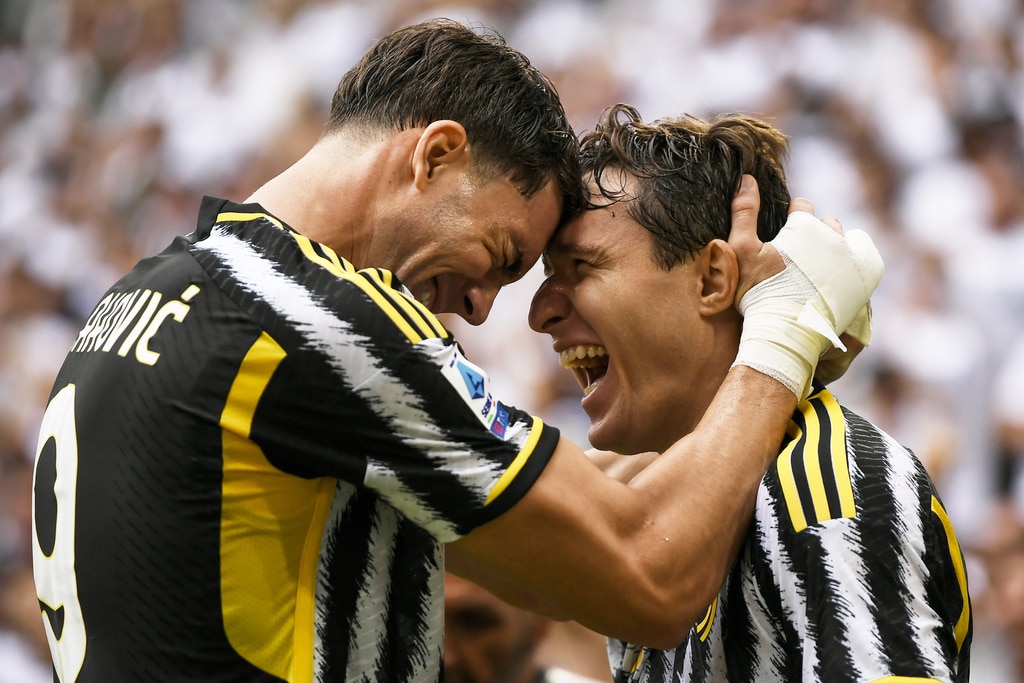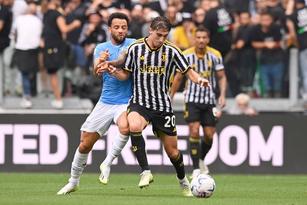 Juventus’ Federico Chiesa, second from right, shoots to score his side’s second goal during a Serie A soccer match between Juventus and Lazio, at Turin’s Juventus Stadium, northern Italy, Saturday, Sept. 16, 2023. (Fabio Ferrari/LaPresse via AP)Juventus’ Federico Chiesa celebrates after scoring his side’s second goal during a Serie A soccer match between Juventus and Lazio, at Turin’s Juventus Stadium, northern Italy, Saturday, Sept. 16, 2023. (Fabio Ferrari/LaPresse via AP)Lazio’s Felipe Anderson, left, vies for the ball with Juventus’ Fabio Miretti during a Serie A soccer match between Juventus and Lazio, at Turin’s Juventus Stadium, northern Italy, Saturday, Sept. 16, 2023. (Fabio Ferrari/LaPresse via AP)Lazio’s Daichi Kamada, left, vies for the ball with Juventus’ Danilo during a Serie A soccer match between Juventus and Lazio, at Turin’s Juventus Stadium, northern Italy, Saturday, Sept. 16, 2023. (Fabio Ferrari/LaPresse via AP)Juventus’ Federico Chiesa, right, celebrates with teammate Dusan Vlahovic after scoring his side’s second goal during a Serie A soccer match between Juventus and Lazio, at Turin’s Juventus Stadium, northern Italy, Saturday, Sept. 16, 2023. (Fabio Ferrari/LaPresse via AP)Lazio’s Daichi Kamada, left, vies for the ball with Juventus’ Danilo during a Serie A soccer match between Juventus and Lazio, at Turin’s Juventus Stadium, northern Italy, Saturday, Sept. 16, 2023. (Fabio Ferrari/LaPresse via AP)Lazio’s Luis Alberto, left, scores his side’s first goal during a Serie A soccer match between Juventus and Lazio, at Turin’s Juventus Stadium, northern Italy, Saturday, Sept. 16, 2023. (Fabio Ferrari/LaPresse via AP)Juventus’ Dusan Vlahovic celebrates after scoring his side’s third goal during a Serie A soccer match between Juventus and Lazio, at Turin’s Juventus Stadium, northern Italy, Saturday, Sept. 16, 2023. (Fabio Ferrari/LaPresse via AP)Juventus’ Dusan Vlahovic center, scores his side’s third goal during a Serie A soccer match between Juventus and Lazio, at Turin’s Juventus Stadium, northern Italy, Saturday, Sept. 16, 2023. (Fabio Ferrari/LaPresse via AP)Juventus’ Dusan Vlahovic shoots to score his side’s third goal during a Serie A soccer match between Juventus and Lazio, at Turin’s Juventus Stadium, northern Italy, Saturday, Sept. 16, 2023. (Fabio Ferrari/LaPresse via AP)Lazio’s Luis Alberto, left, celebrates after scoring his side’s first goal during a Serie A soccer match between Juventus and Lazio, at Turin’s Juventus Stadium, northern Italy, Saturday, Sept. 16, 2023. (Fabio Ferrari/LaPresse via AP)Juventus Dusan Vlahovic controls the ball during a Serie A soccer match between Juventus and Lazio, at Turin’s Juventus Stadium, northern Italy, Saturday, Sept. 16, 2023. (Fabio Ferrari/LaPresse via AP)Juventus’ Andrea Cambiaso, right, controls the ball during a Serie A soccer match between Juventus and Lazio, at Turin’s Juventus Stadium, northern Italy, Saturday, Sept. 16, 2023. (Fabio Ferrari/LaPresse via AP)Juventus’ Dusan Vlahovic celebrates after scoring his side’s third goal during a Serie A soccer match between Juventus and Lazio, at Turin’s Juventus Stadium, northern Italy, Saturday, Sept. 16, 2023. (Fabio Ferrari/LaPresse via AP)