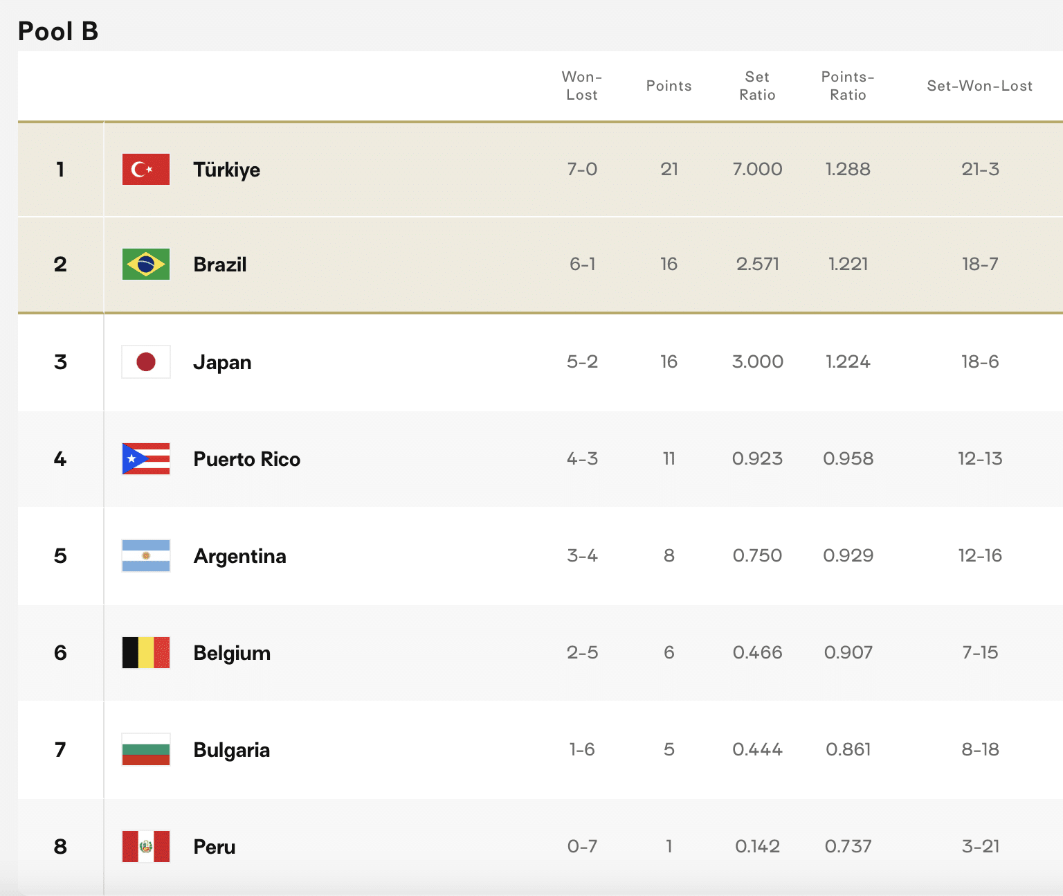 ตารางคะแนนวอลเลย์บอลคัดโอลิมปิก 2024 ทุกกลุ่ม หลังจบนัดที่ 7