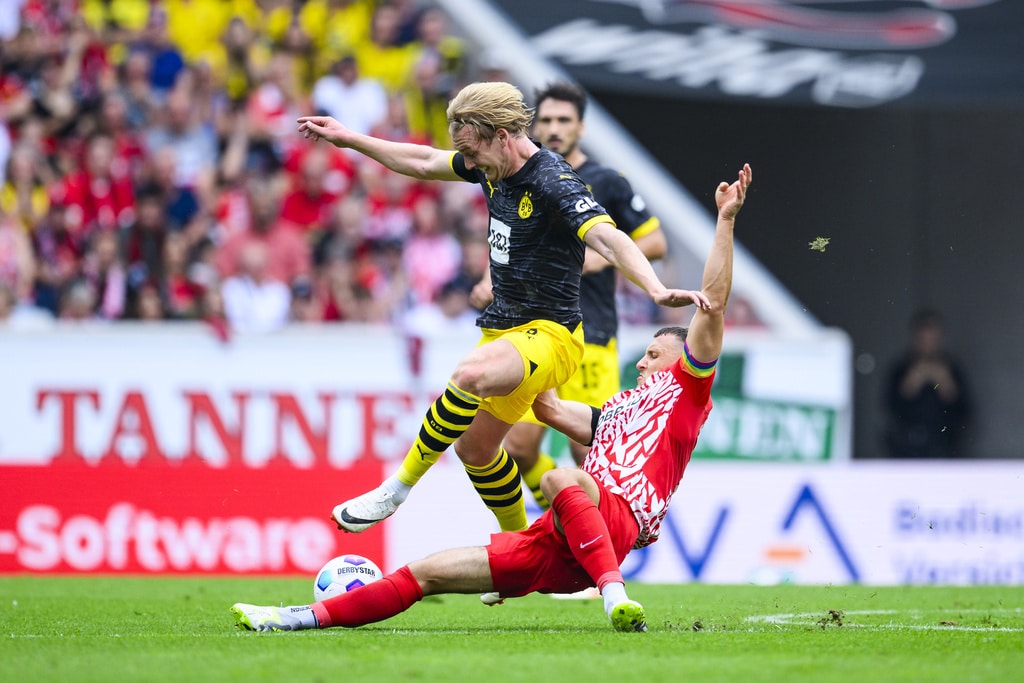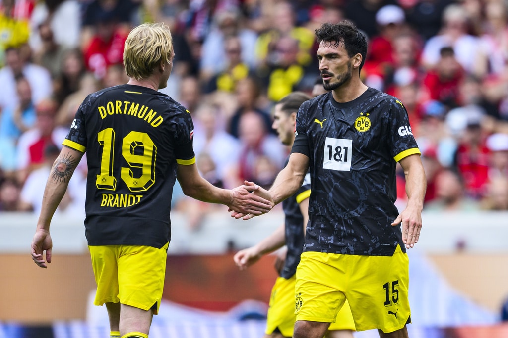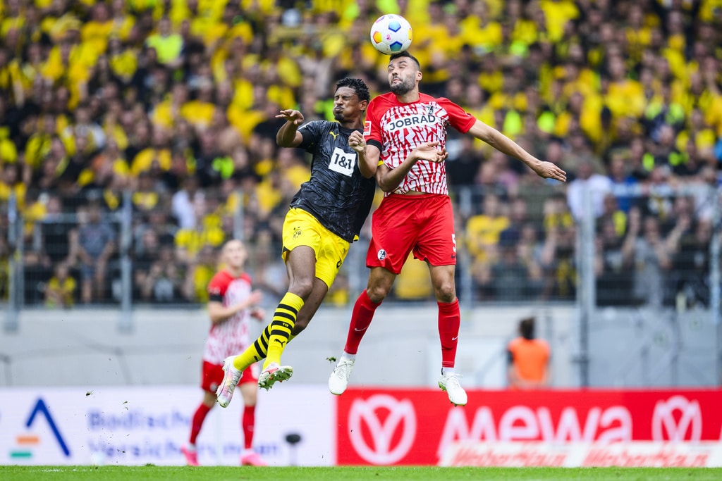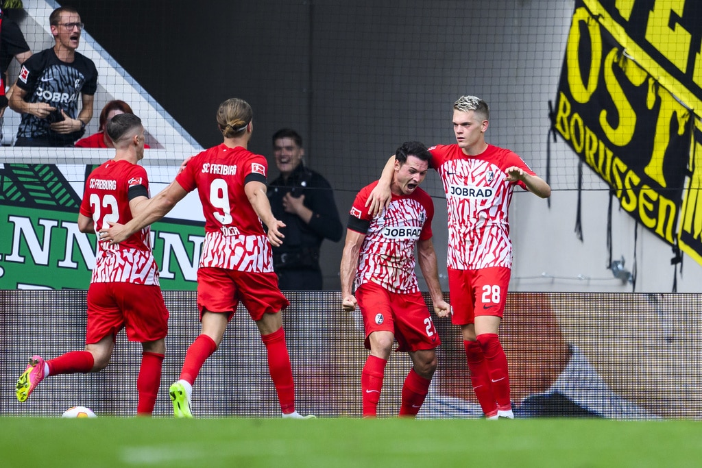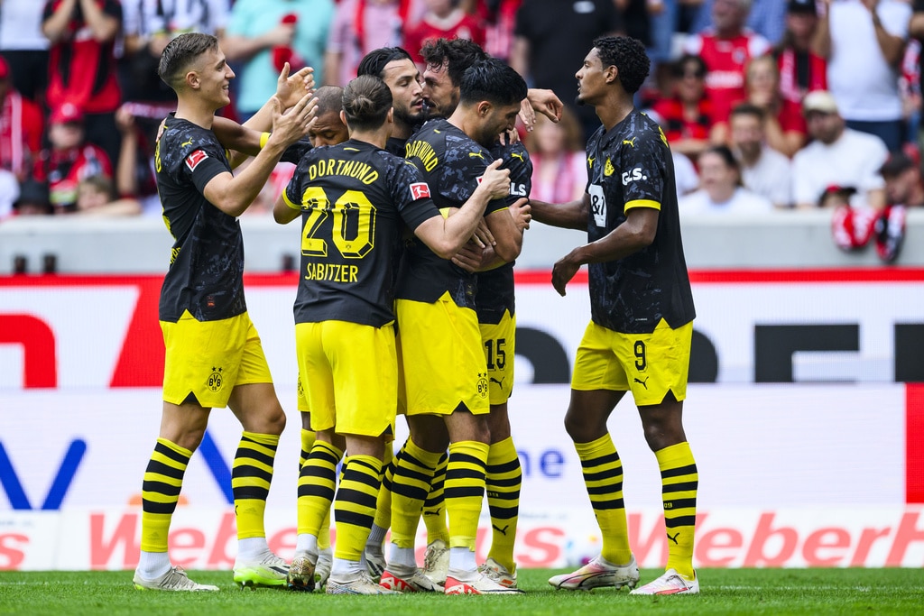 Dortmund’s head coach Edin Terzic applauds during the German Bundesliga soccer match between SC Freiburg and Borussia Dortmund in Freiburg, Germany, Saturday, Sept. 16, 2023. (Tom Weller/dpa via AP)Freiburg’s Nicolas Höfler, second from right, scores his side’s second goal of the German Bundesliga soccer match between SC Freiburg and Borussia Dortmund in Freiburg, Germany, Saturday, Sept. 16, 2023. (Tom Weller/dpa via AP)Dortmund’s scorer mats Hummels, right, and his teammate Julian Brandt, left, celebrate the opening goal during the German Bundesliga soccer match between SC Freiburg and Borussia Dortmund in Freiburg, Germany, Saturday, Sept. 16, 2023. (Tom Weller/dpa via AP)Dortmund’s Sebastien Haller, left, and Freiburg’s Manuel Gulde, right, go for a header during the German Bundesliga soccer match between SC Freiburg and Borussia Dortmund in Freiburg, Germany, Saturday, Sept. 16, 2023. (Tom Weller/dpa via AP)Dortmund’s Julian Brandt, and Freiburg’s Maximilian Eggestein, right, challenge for the ball during the German Bundesliga soccer match between SC Freiburg and Borussia Dortmund in Freiburg, Germany, Saturday, Sept. 16, 2023. (Tom Weller/dpa via AP)Dortmund’s scorer mats Hummels, third right, and his teammates celebrate the opening goal during the German Bundesliga soccer match between SC Freiburg and Borussia Dortmund in Freiburg, Germany, Saturday, Sept. 16, 2023. (Tom Weller/dpa via AP)Dortmund’s Donyell Malen celebrates after scoring his side’s second goal of the German Bundesliga soccer match between SC Freiburg and Borussia Dortmund in Freiburg, Germany, Saturday, Sept. 16, 2023. (Tom Weller/dpa via AP)Freiburg’s Nicolas Höfler, second from right, celebrates after scoring his side’s second goal of the German Bundesliga soccer match between SC Freiburg and Borussia Dortmund in Freiburg, Germany, Saturday, Sept. 16, 2023. (Tom Weller/dpa via AP)Dortmund’s Donyell Malen, left, scores his side’s second goal of the German Bundesliga soccer match between SC Freiburg and Borussia Dortmund in Freiburg, Germany, Saturday, Sept. 16, 2023. (Tom Weller/dpa via AP)Dortmund’s Mats Hummels, second from left, scores his side’s third goal of the German Bundesliga soccer match between SC Freiburg and Borussia Dortmund in Freiburg, Germany, Saturday, Sept. 16, 2023. (Tom Weller/dpa via AP)Dortmund’s Marco Reus, right, celebrates with Dortmund’s Youssoufa Moukoko, left, after scoring his side’s fourth goal of the German Bundesliga soccer match between SC Freiburg and Borussia Dortmund in Freiburg, Germany, Saturday, Sept. 16, 2023. (Tom Weller/dpa via AP)