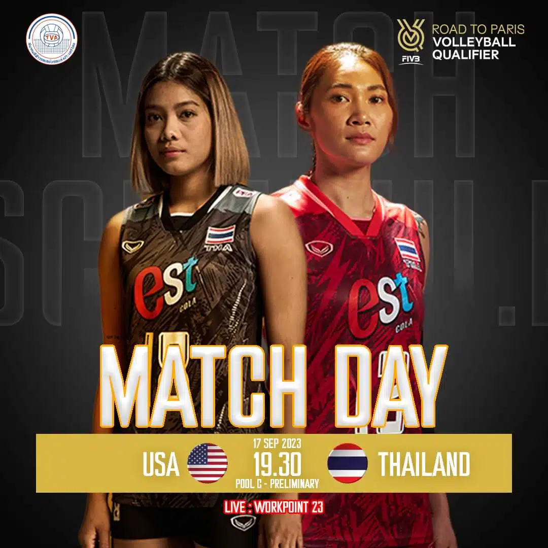 ถ่ายทอดสดวอลเลย์บอลหญิงวันนี้ ไทย พบ สหรัฐอเมริกา วอลเลย์บอลหญิงคัดโอลิมปิก 2024 แข่งเวลา 19.30 น. ดูวอลเลย์บอลสด Workpoint ช่อง 23 ออนไลน์ ด้านล่าง