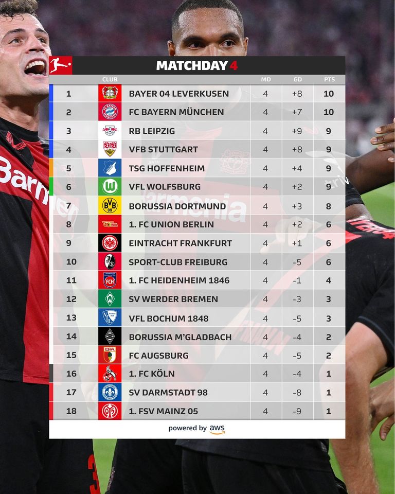สรุปผลการแข่งขัน บุนเดสลีกา เยอรมัน 2023/24 หลังจบนัดที่ 4