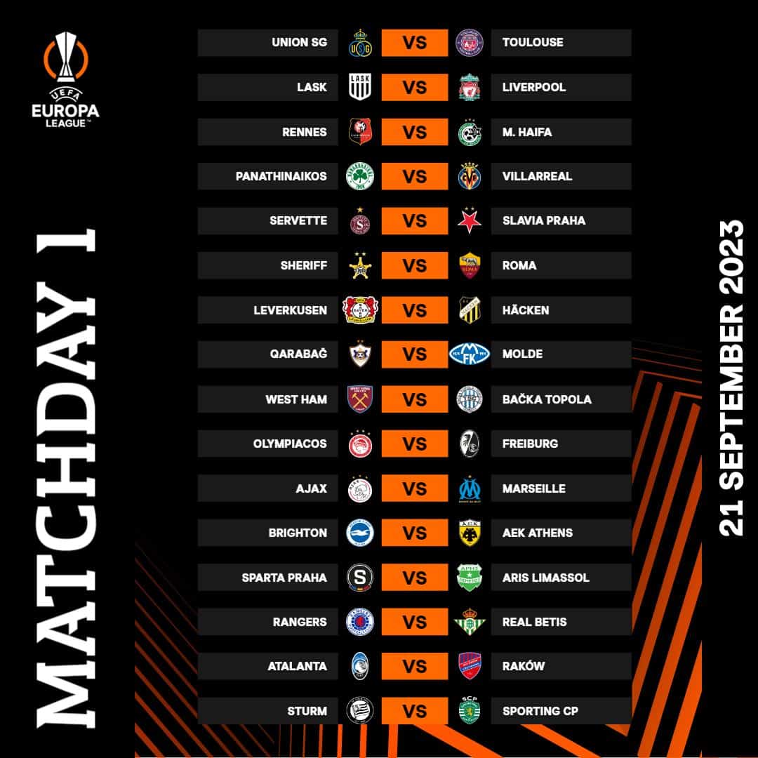 ยูโรป้า ลีก รอบแบ่งกลุ่ม 2023/24 วันพุธที่ 20 กันยายน 2566